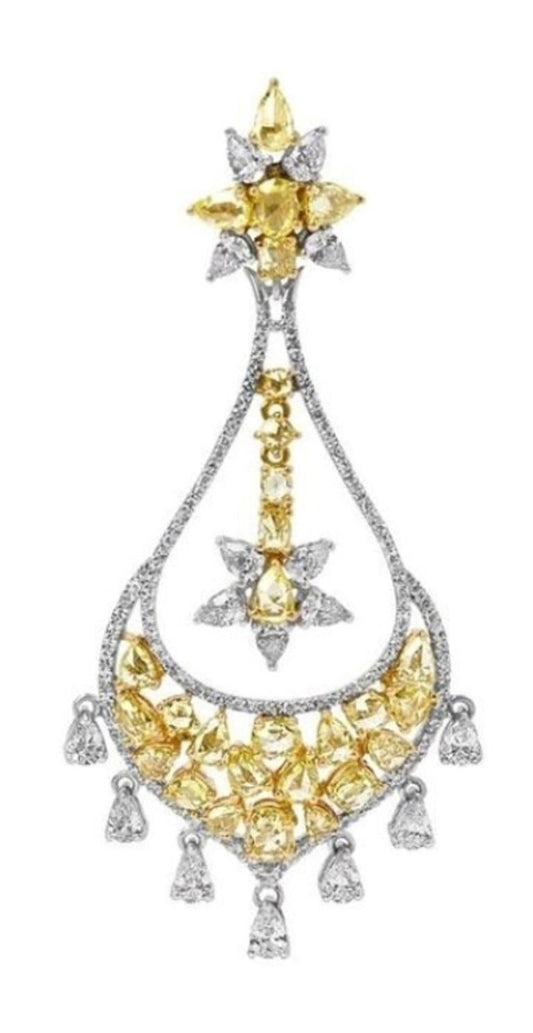 9.49 Carat Fancy Color Diamond Briolette Earrings, White Gold