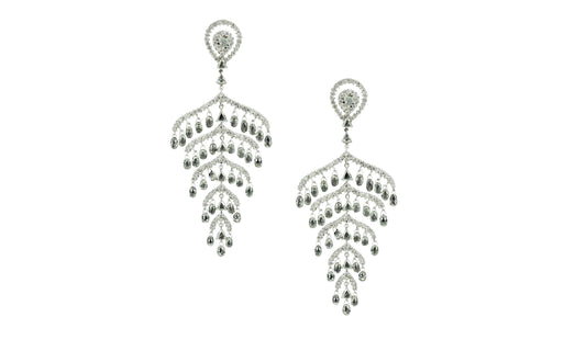 14.84 Carat Diamond Briolette Chandelier Earrings, White Gold