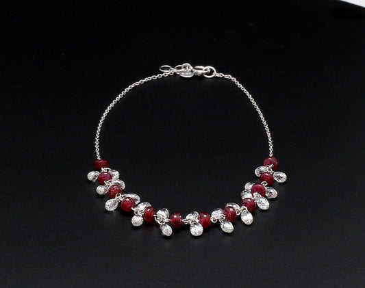 Diamond Briolette & Ruby 18K White Gold Dangling Bracelet