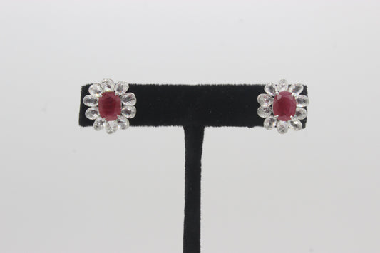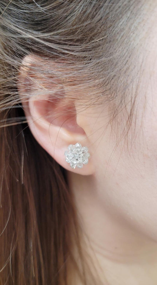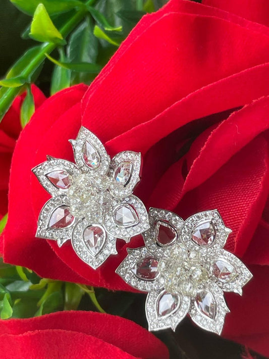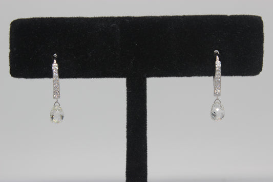 Diamond Briolette and Emerald Cluster Earrings,White Gold