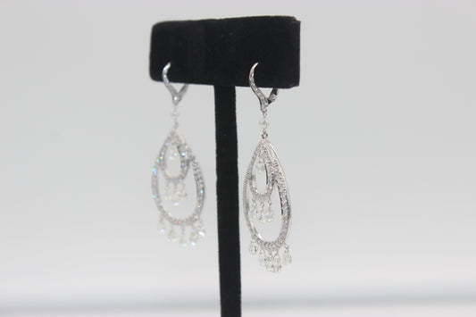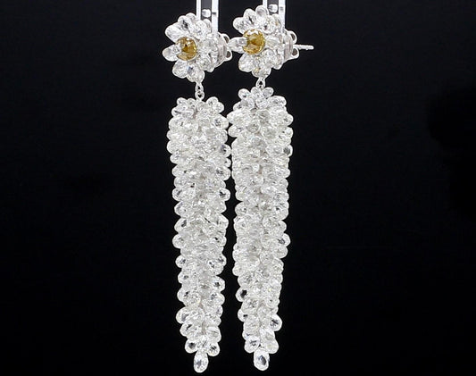 16.17 Carats Diamond Briolette Spiral Chandelier Earrings, White Gold