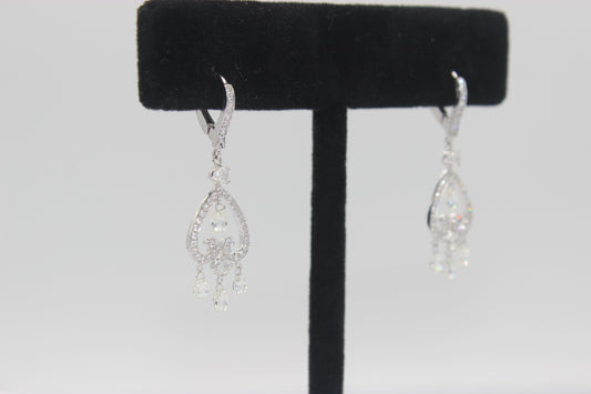Diamond Briolette Chandelier Earrings, White Gold