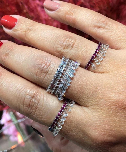 Diamond Briolettes & Ruby Dangling Ring, White Gold