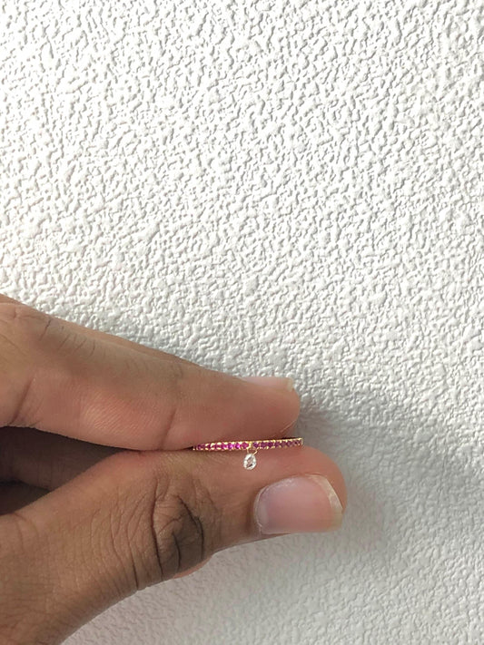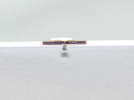 Mono Diamond Briolette & Sapphire Dangling Ring, Rose Gold