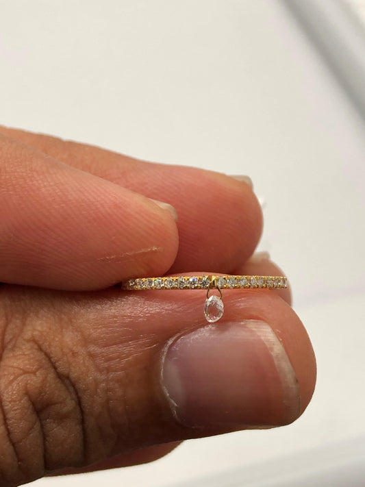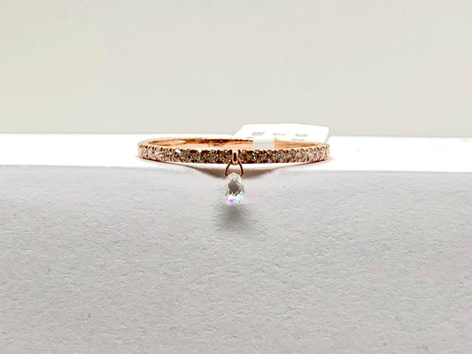 Mono Briolette Diamond Dangling Ring, Rose Gold