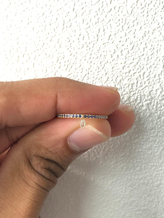 Mono Diamond Briolette & Sapphire Dangling Ring, Yellow Gold
