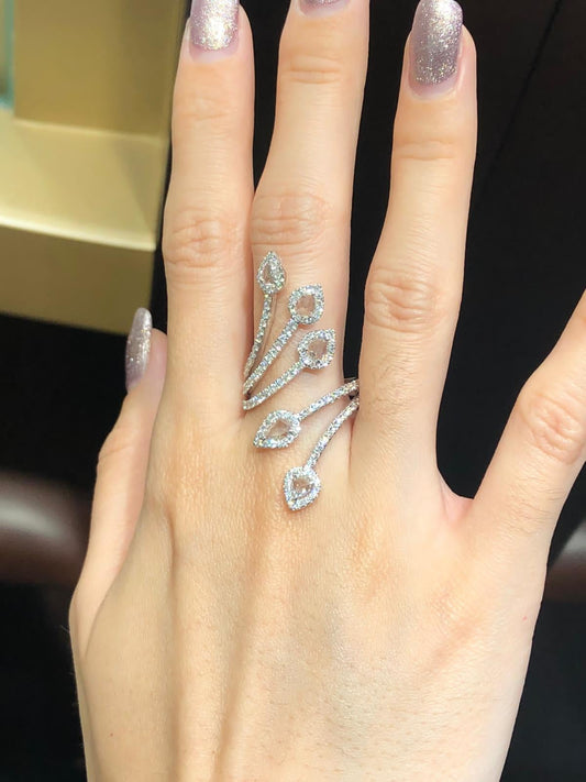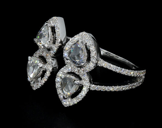 1 Carat Pear Diamond Rosecut Wrap Ring, White Gold