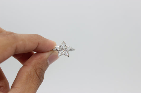 1.14 Carat Diamond Rosecut Snowflake Ring, White Gold