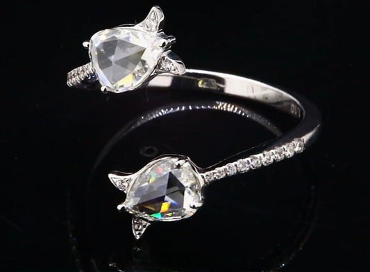 0.61 Carat Diamond Rosecut Moi Et Toi Ring, White Gold