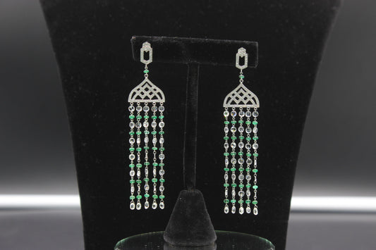 Diamond Rosecut & Emerald Chandelier Earrings