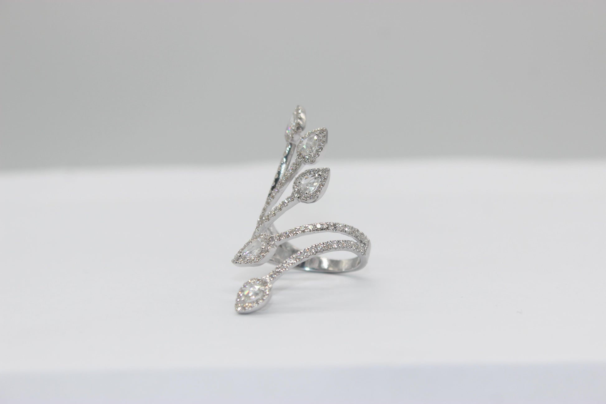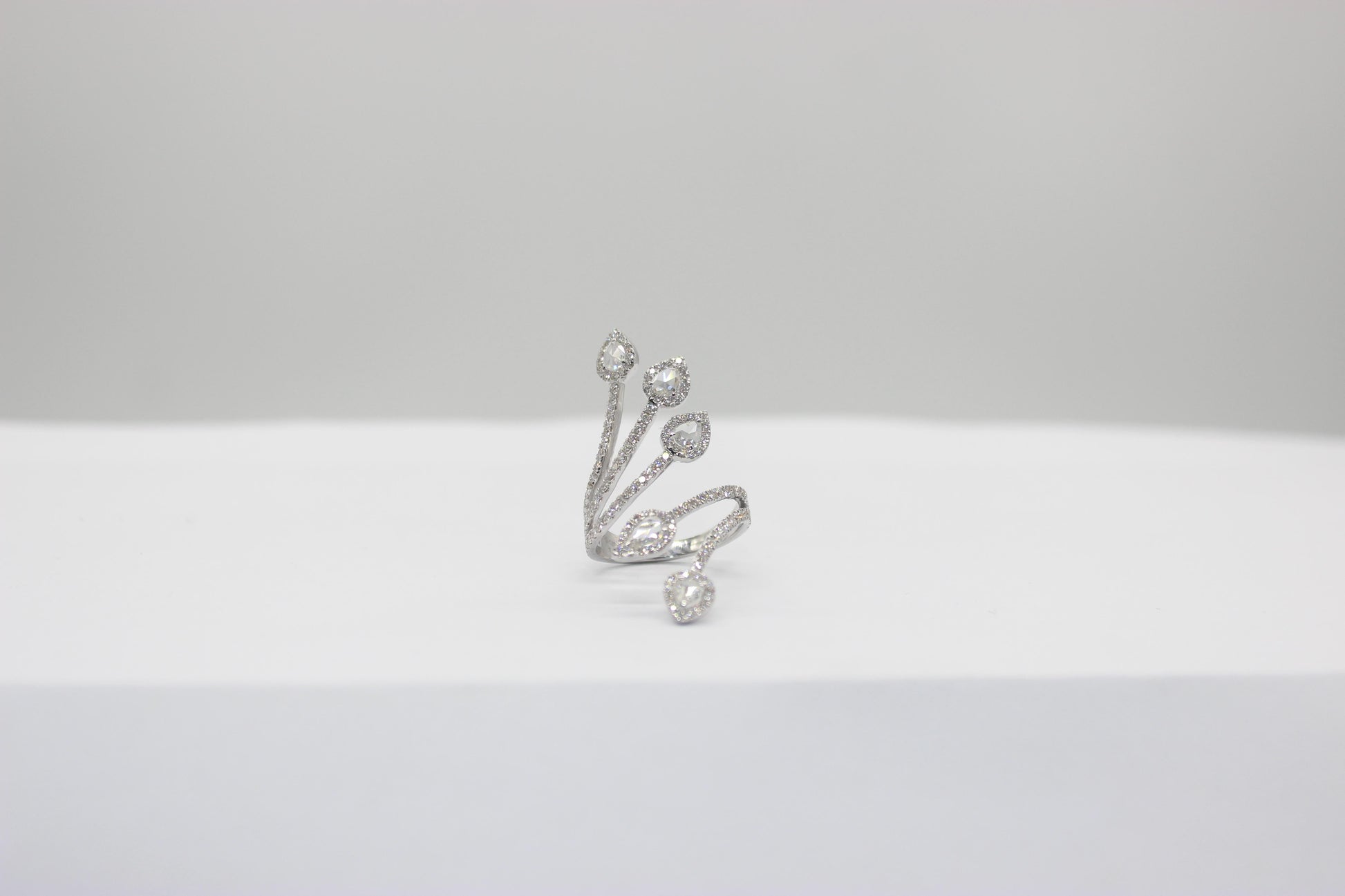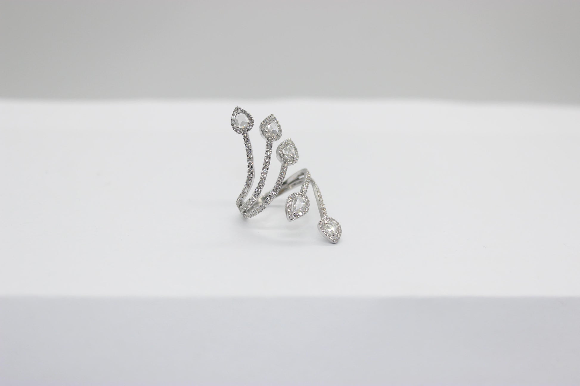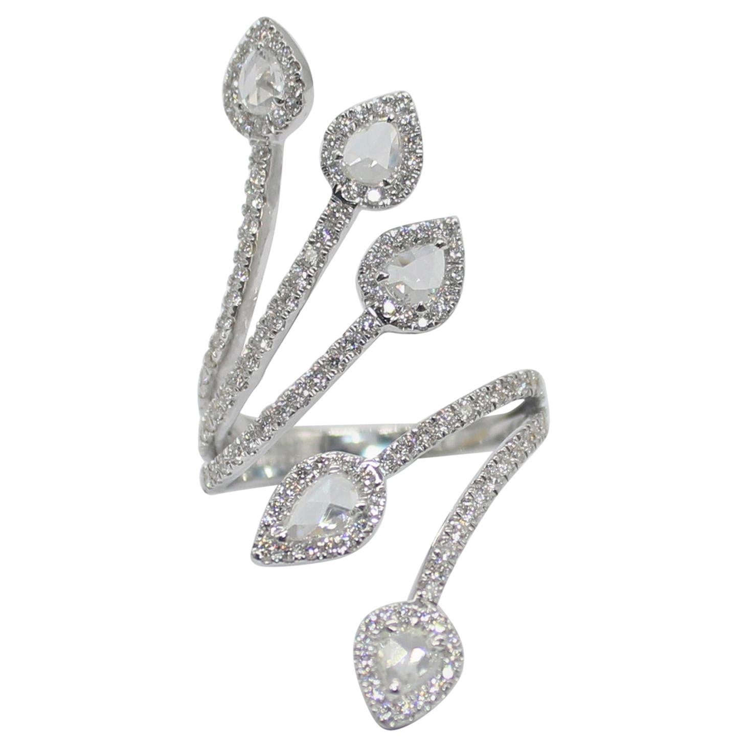 1.41 Carat Diamond Rosecut Cocktail Ring, White Gold