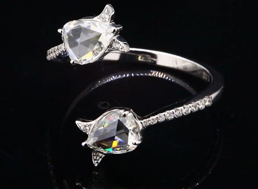 Presented here is 1.10 Total diamond cts Diamond Pear shape Ring which can be worn everyday or an evening cocktail party. Two half carat Pear shape rosecut along with small round brilliant cut diamonds beautifully crafted in 18k White Gold.