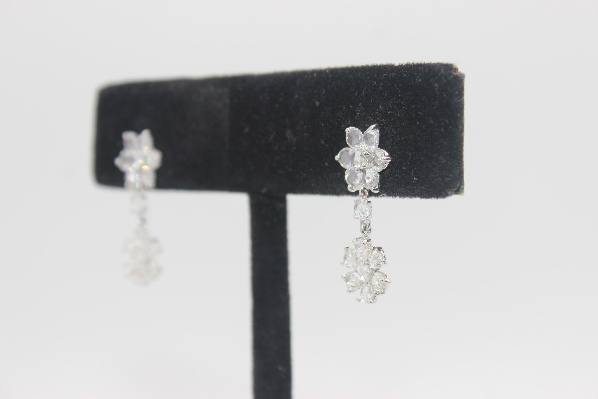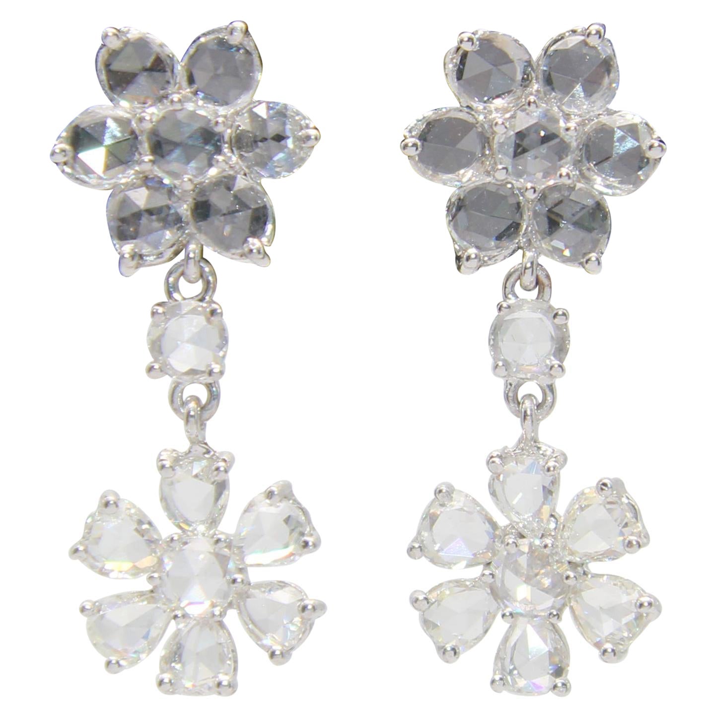 2.87 Carat Diamond Rosecut Floral Earrings, White Gold