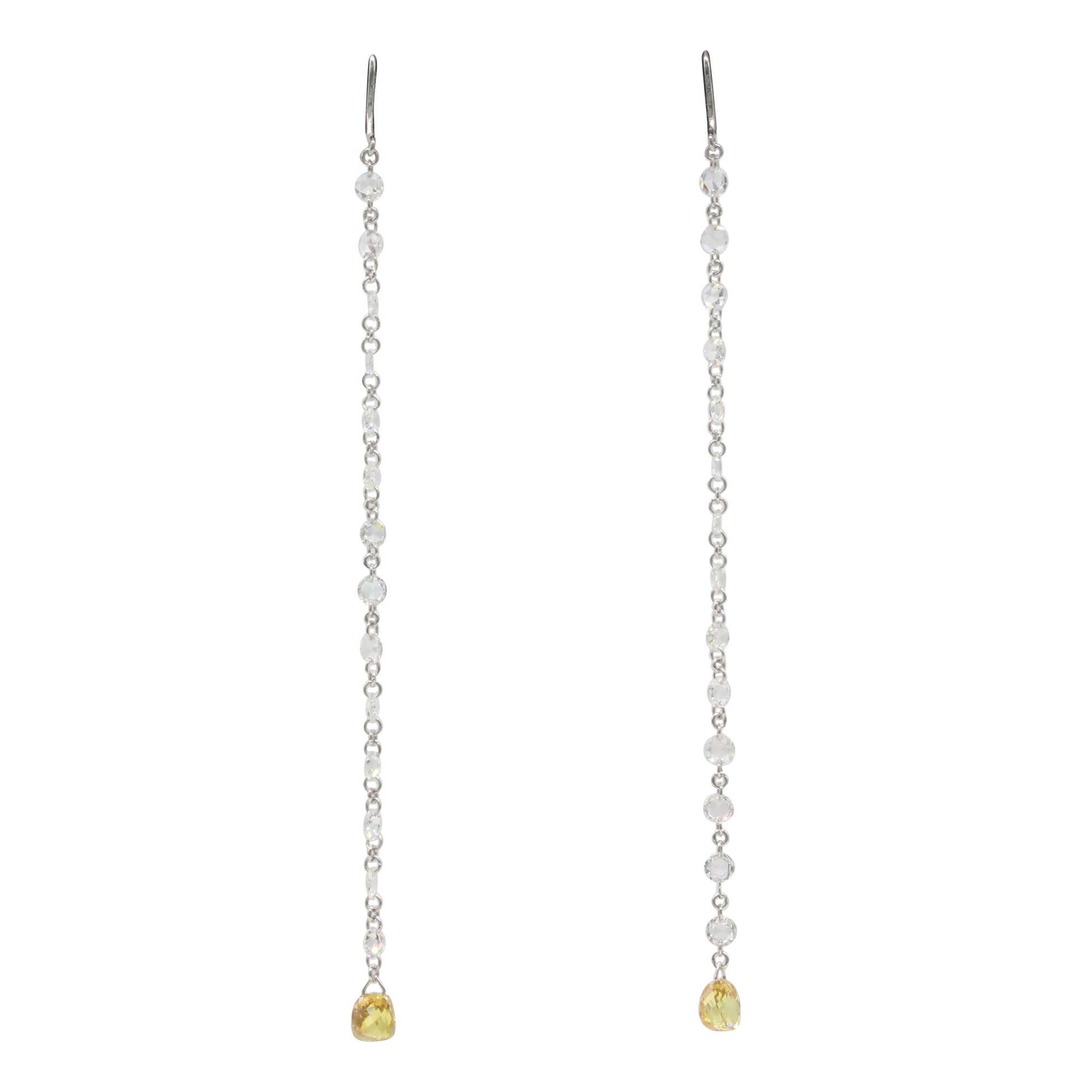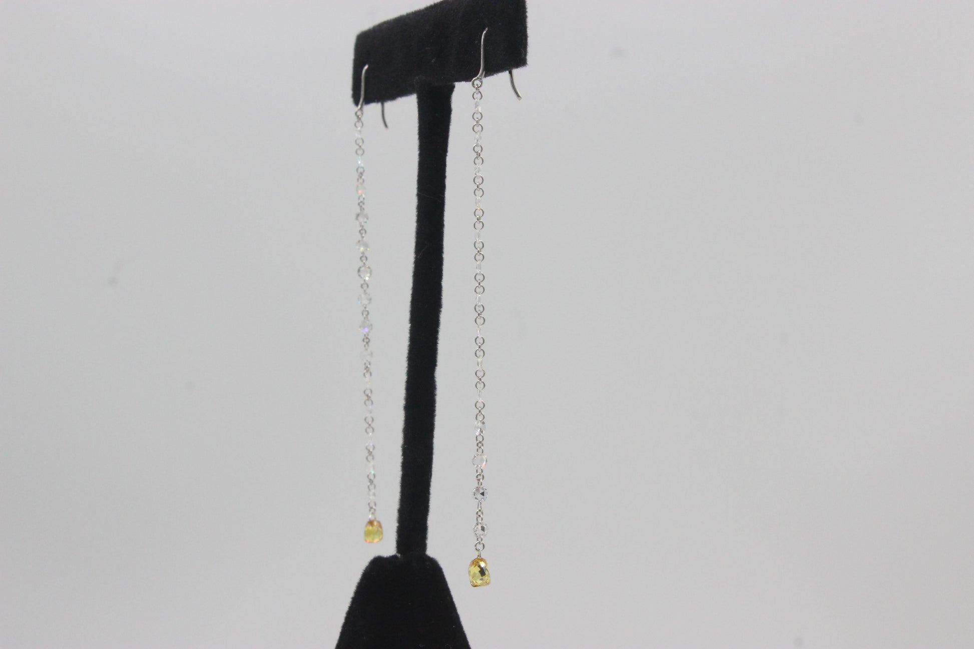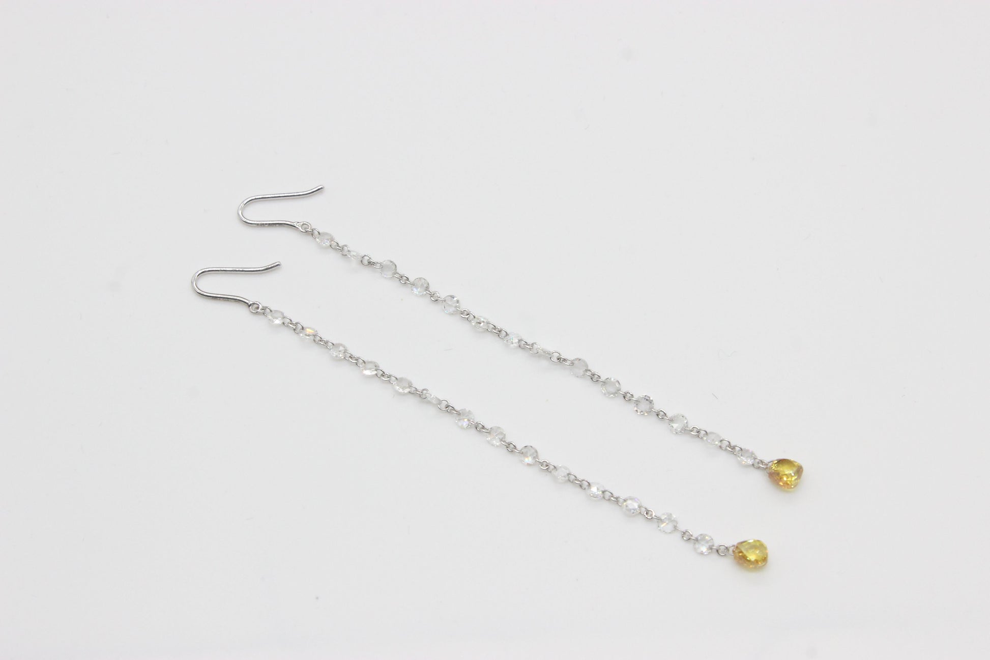 2 Carat Rosecut & Fancy Color Briolette Mono Earrings, White Gold