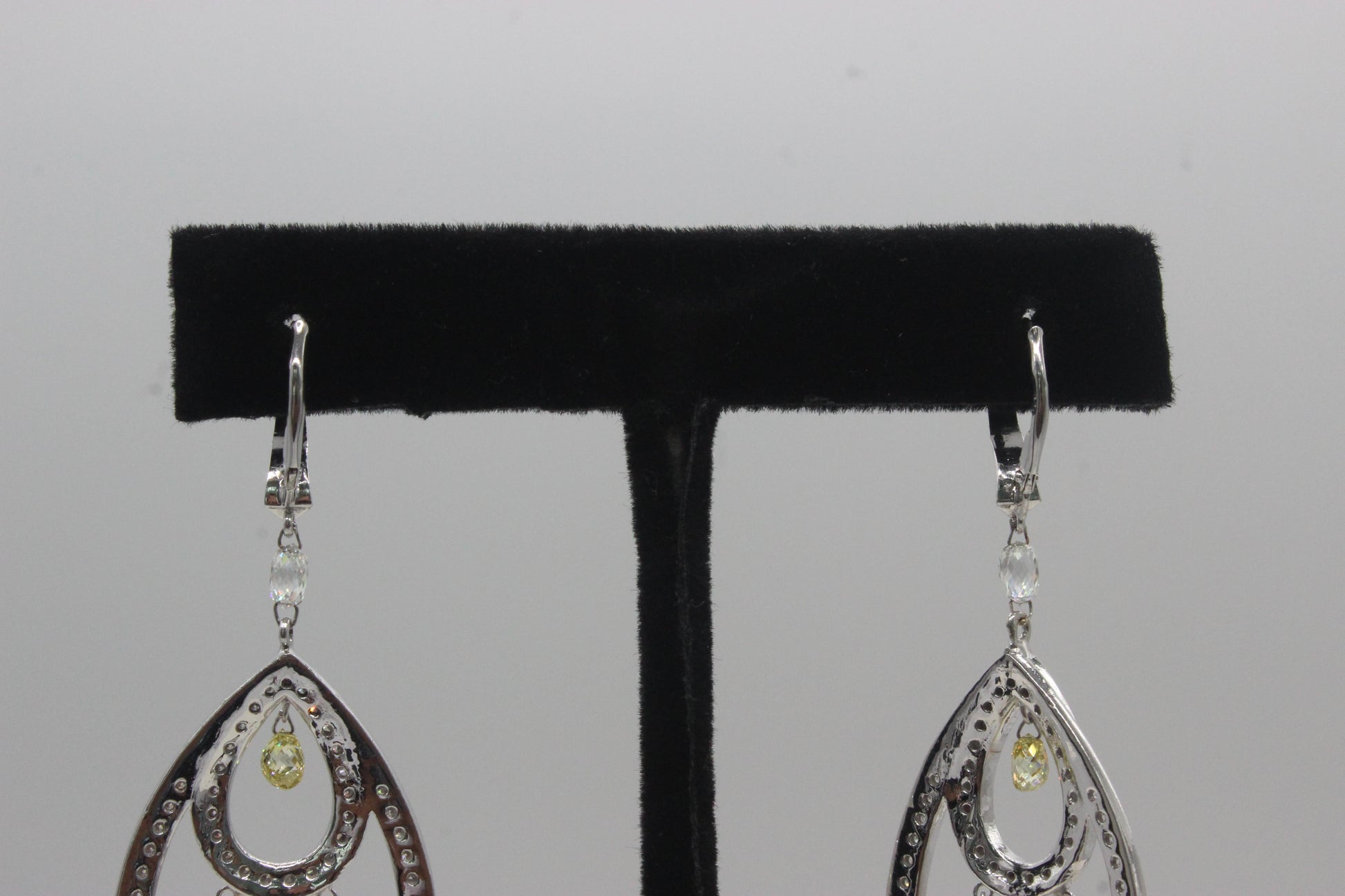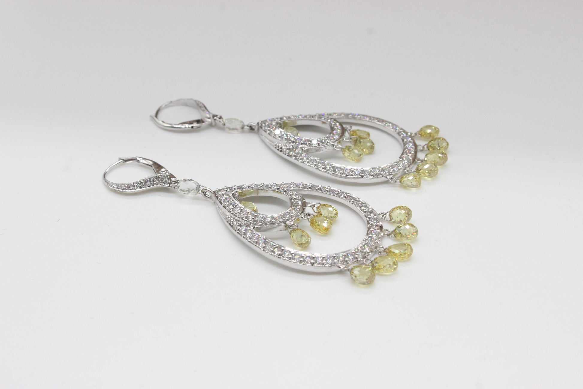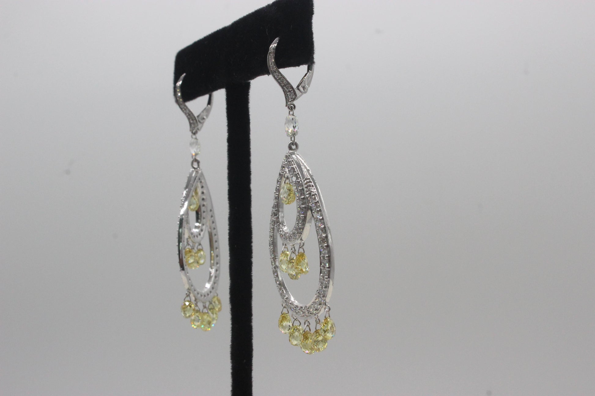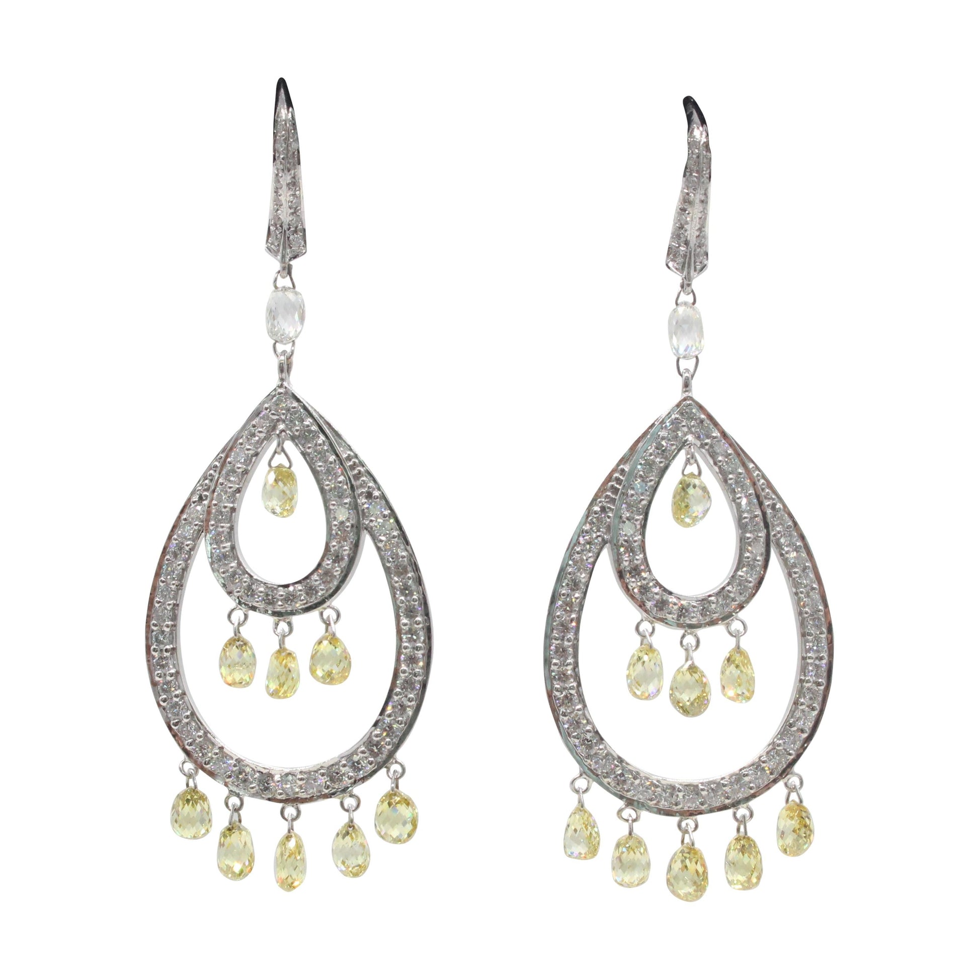 9.49 Carat Fancy Color Diamond Briolette Earrings, White Gold
