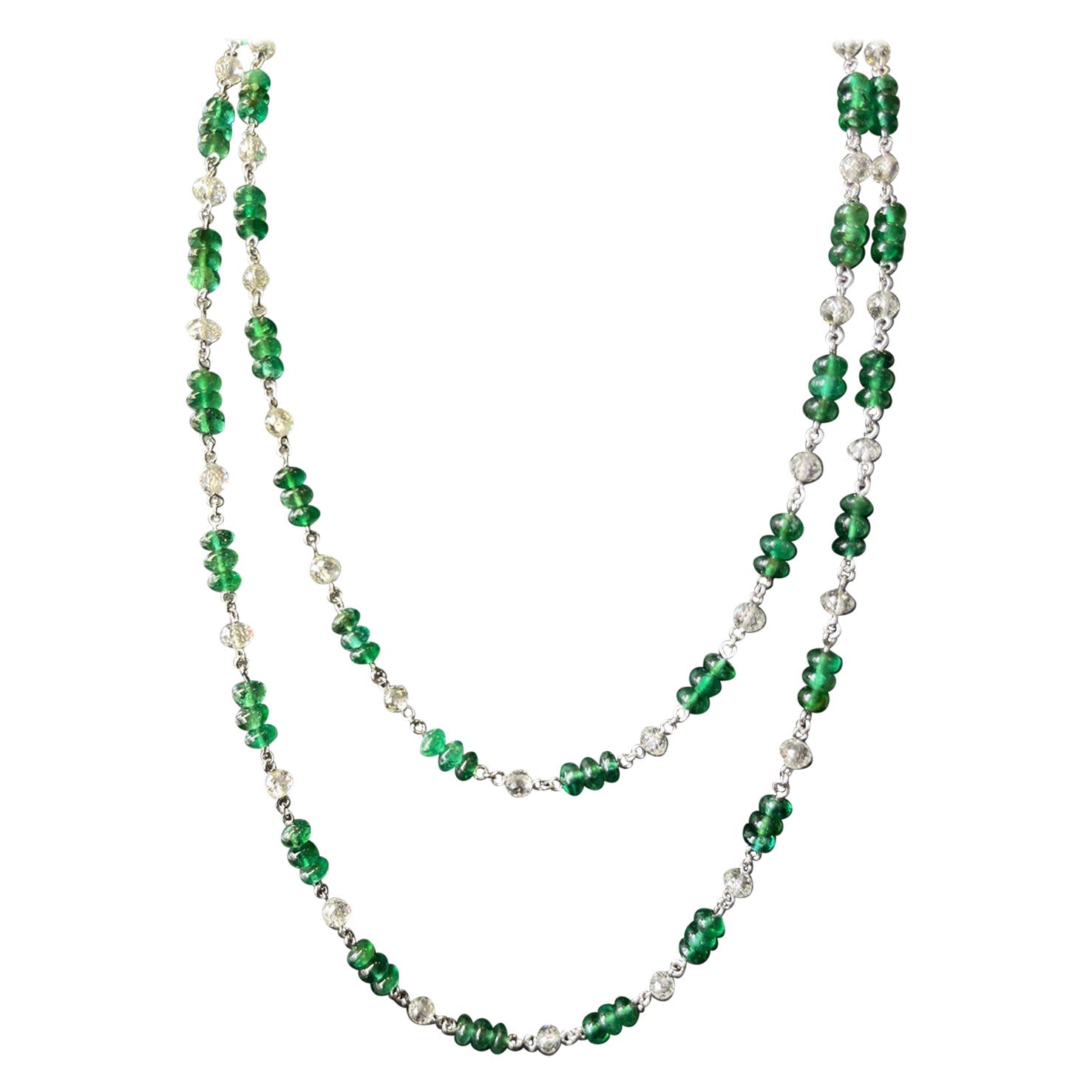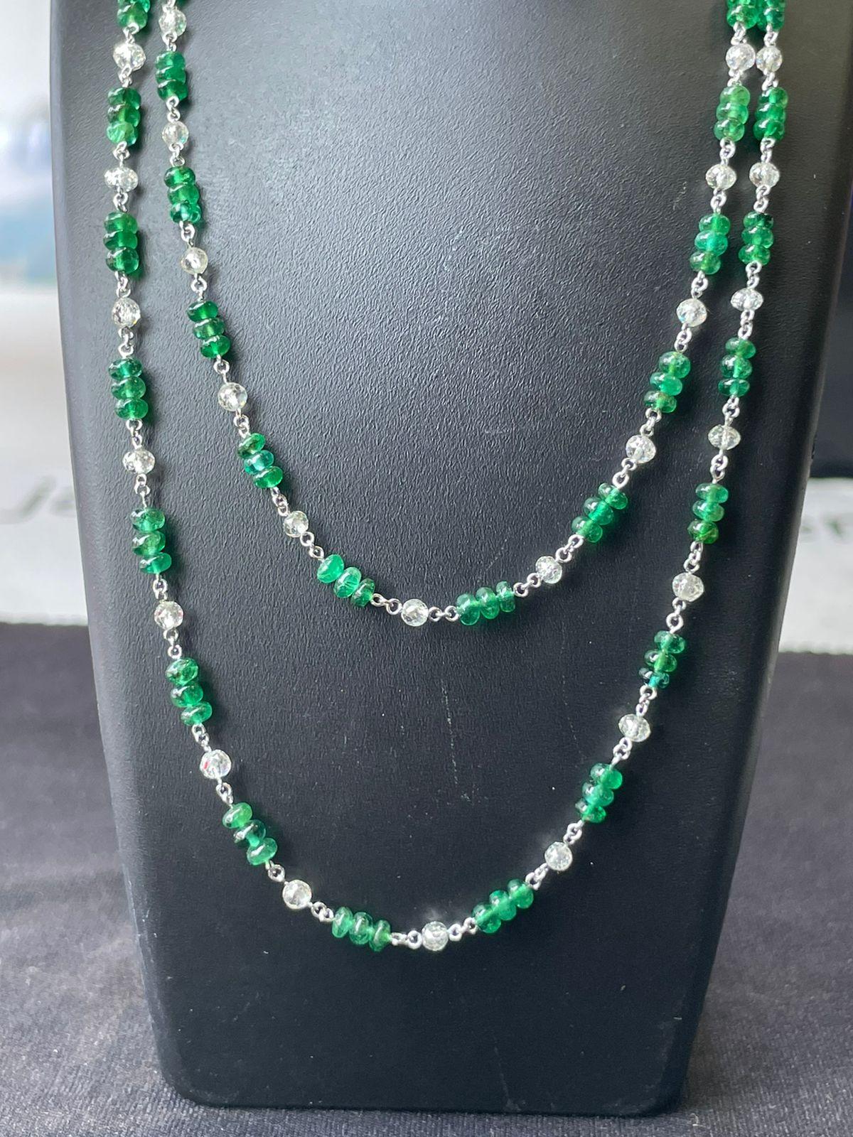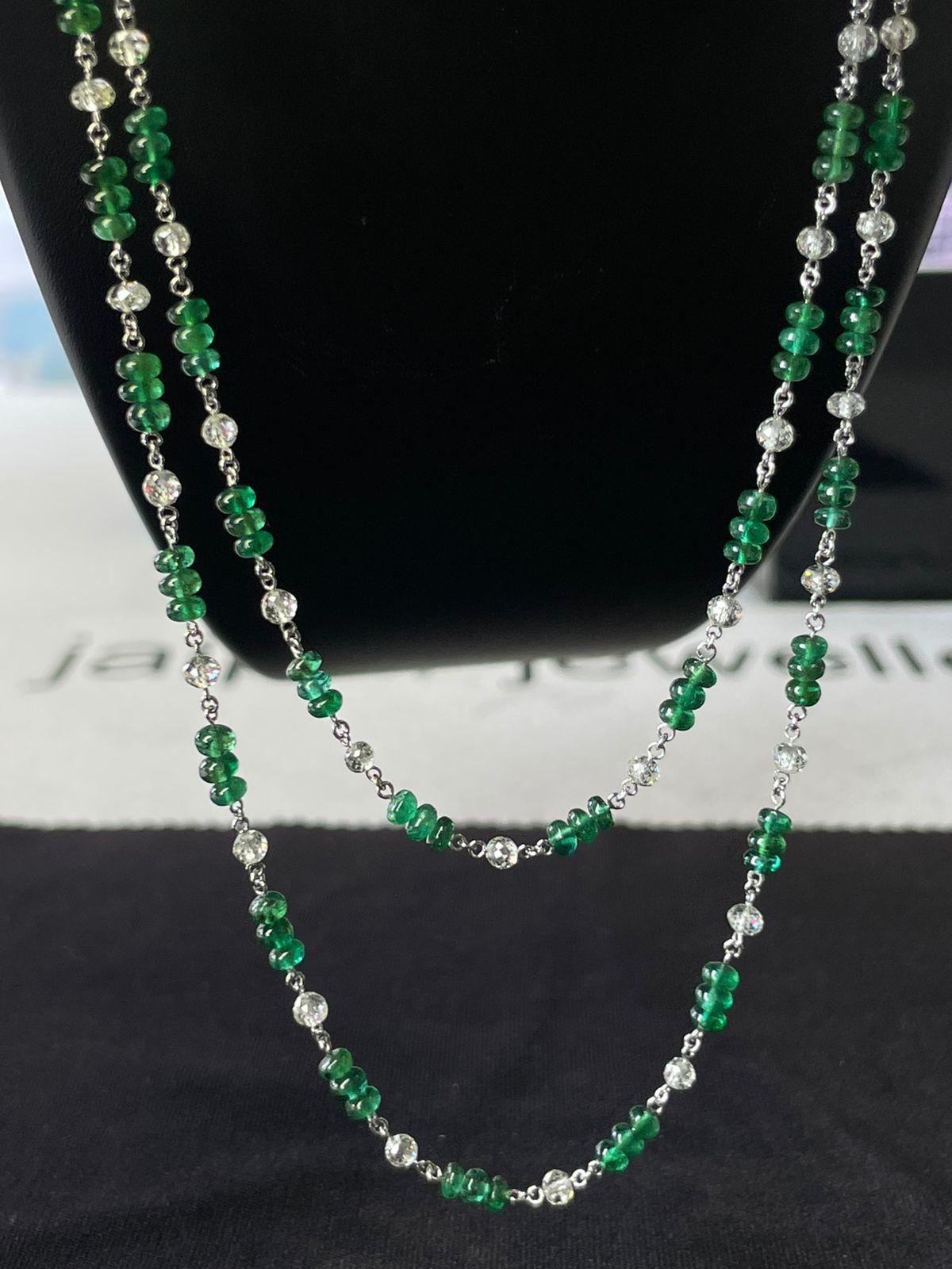 Diamond Beads & Natural Green Emeralds are used to embellish a delicate necklace ,everything fluidly flowing among one another, their hues enhancing one another's. Perfect as a gift for loved ones and for wearing alone for a simple everyday look or layered with other pieces for a contemporary on-trend look.