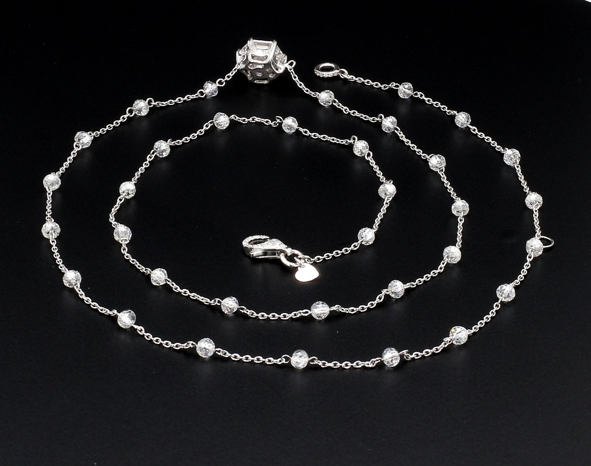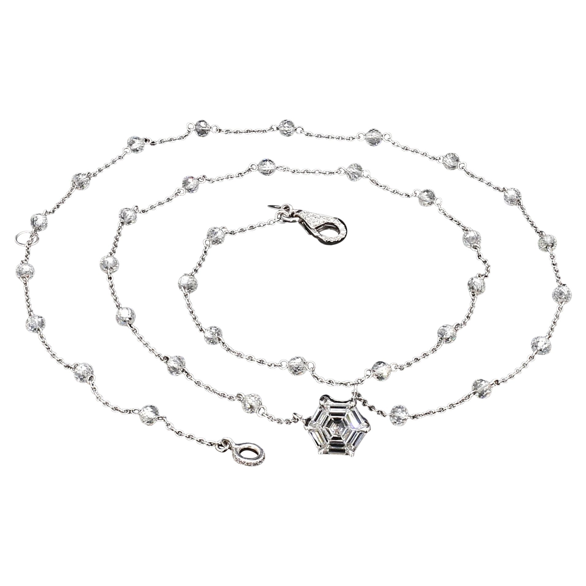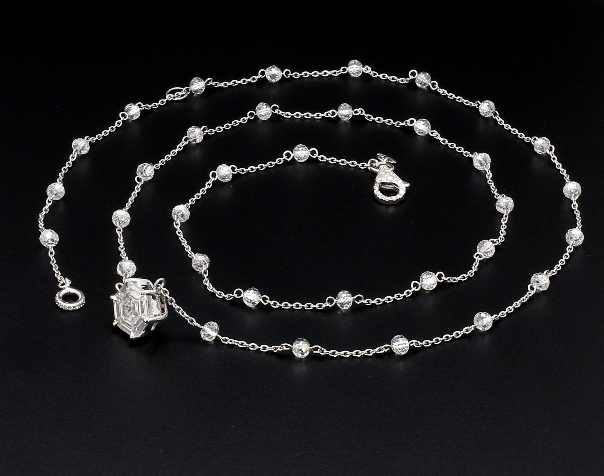 Diamond Beads & Illusion Hexagon Pendant Necklace