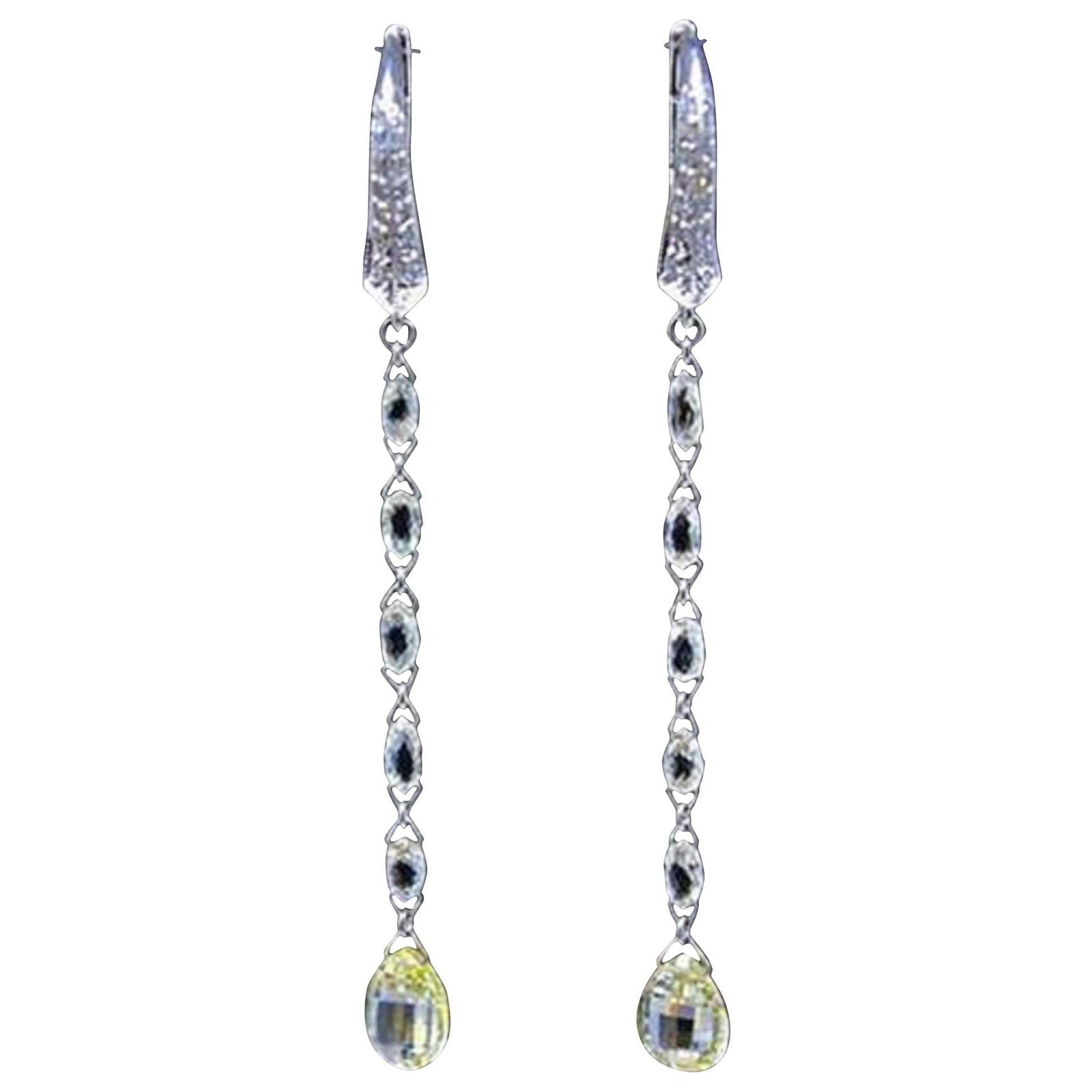 Diamond Briolette 18K White Gold Mono Drop Earrings