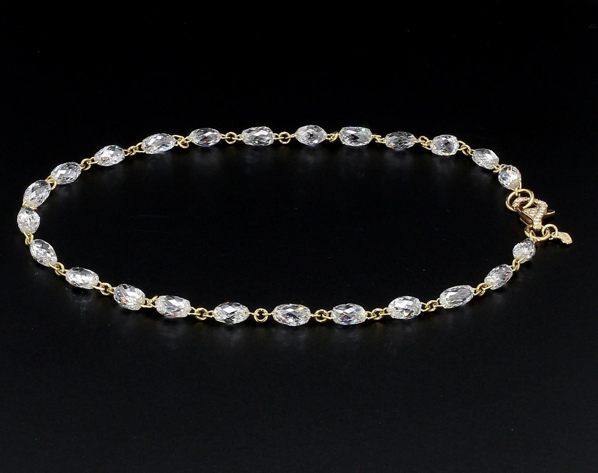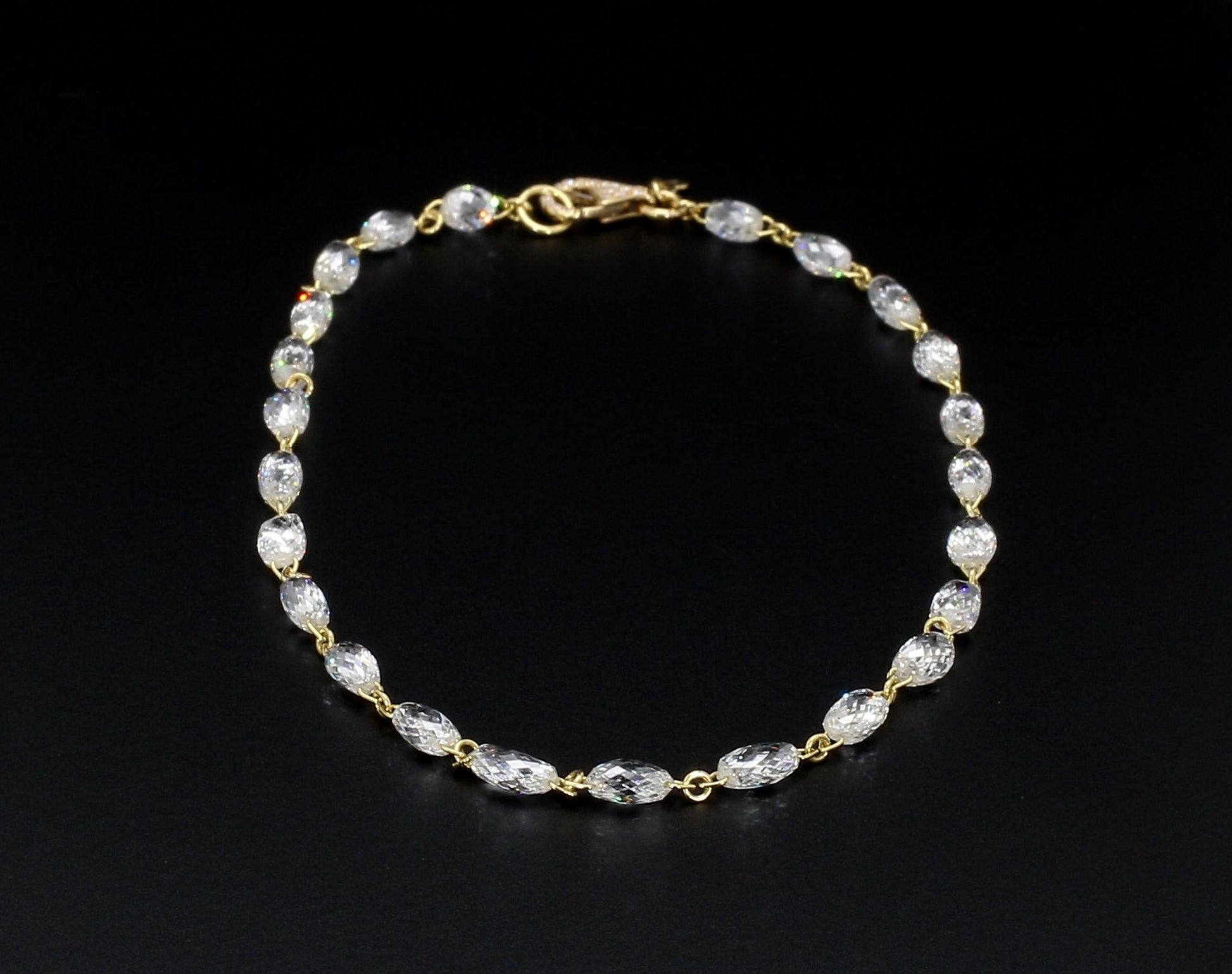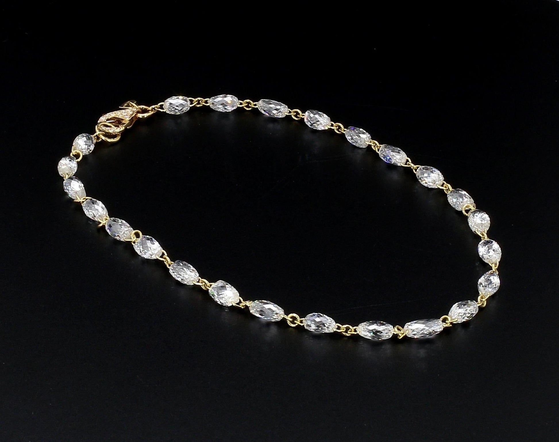 Diamond briolette bracelet .the diamond briolettes are set beside each other with almost invisible 18kt gold links making a continuous flow of diamonds. Set in 18kt yellow gold ,the diamond briolette shine and throws off a lot of fire.It is perfect for a casual lunch date or a fancy dinner party .It can also be stacked with other bracelets for a more chic look.