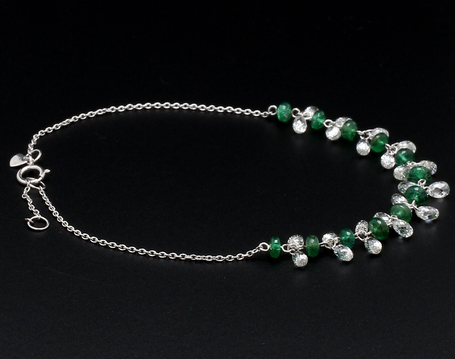 Our dangling briolette-cut diamond bracelet is extremely wearable. Its versatility and classic design make it a great accompaniment to various occasions. Beautifully made with Briolette Cut Diamond. Its has a beautiful combination of Briolette diamonds as petals dangling between natural no heated emeralds .