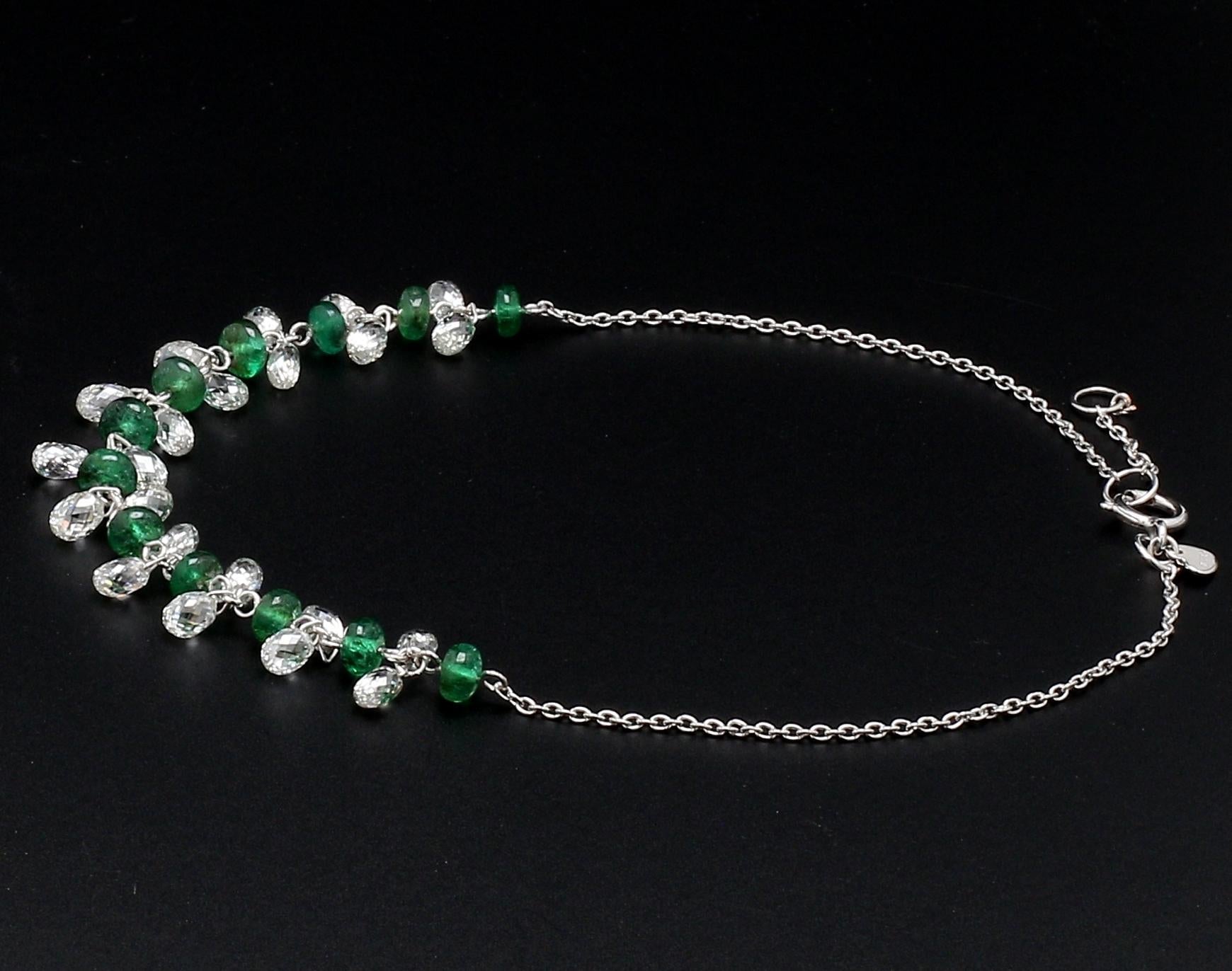 Diamond Briolette and Emerald 18k White Gold Dangling Bracelet