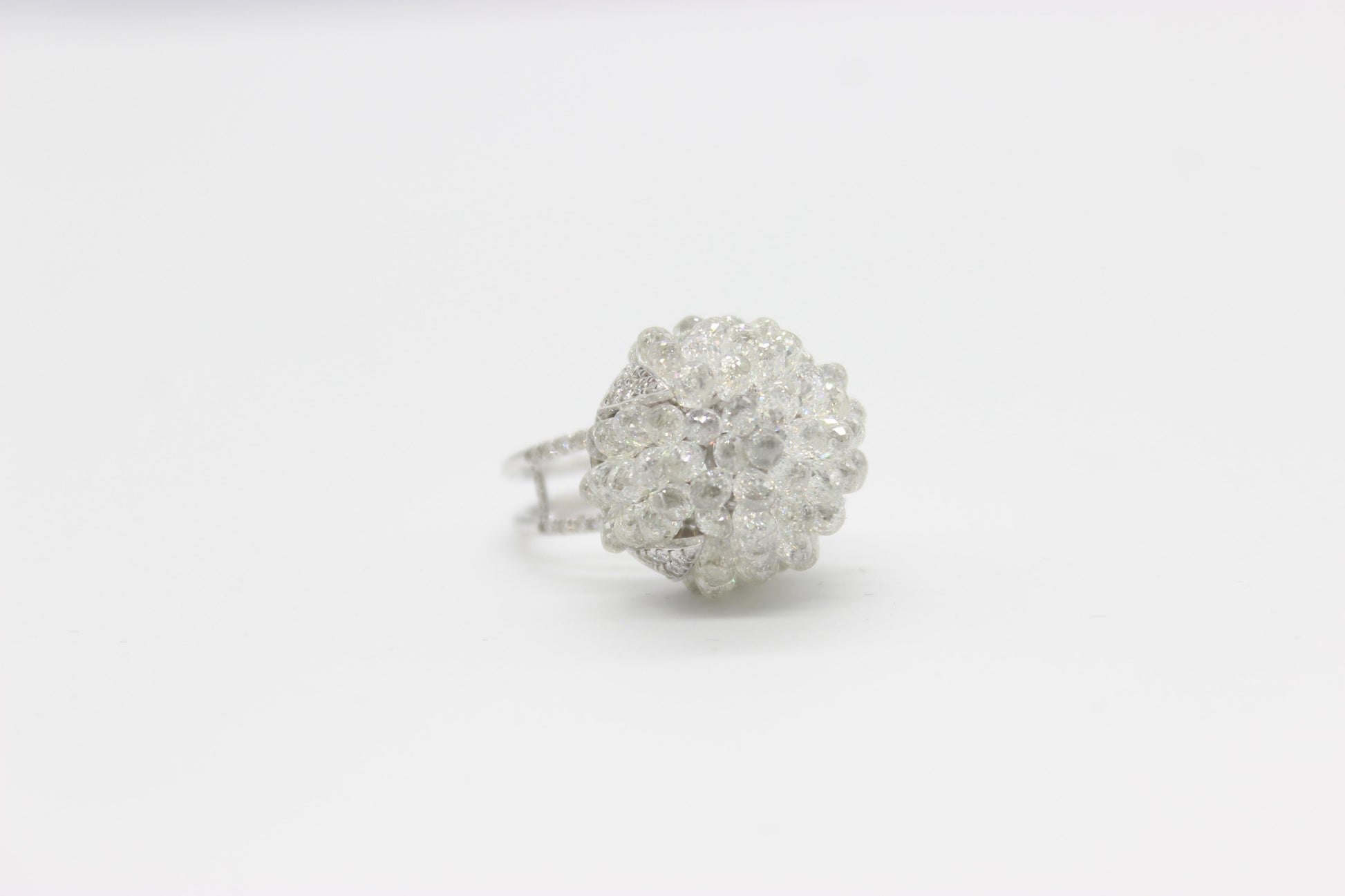 An exquisite, elegant, and spectacular briolette cluster ring set in 18 karat white gold with white diamond briolette weighing almost 16 carats. The cluster head is made up of numerous briolette cut diamonds resembling a bouquet of diamonds with a promise to love her forever. The dazzling ring exudes elegance and passion.