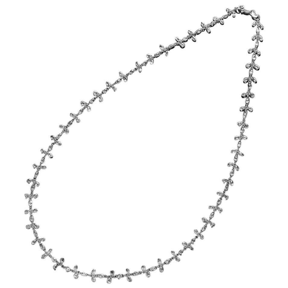 Introducing the 100 ct Panim Floral Necklace, bringing in the SWEET GLAMOUR. This necklace is dainty, sophisticated, and perfect for any occasion. Diamond Briolettes in a wonderful long row. These diamonds flow continually around the neck and are connected by almost invisible 18K gold links to highlight the briolettes. This necklace has a classic briolette cut that appears modern and stylish. It is also quite attractive. No gesture is nearly as romantic or lasting as the gift of a lovely diamond necklace. The necklace is decorated with double-sided and single-sided diamond briolettes in floral motifs. Subtly accentuated by a pavé diamond lobster clasp and ring, as well as a Briolette diamond for an elegant Lariat style. It is long and can be worn long or layered by wrapping it twice around the neck.