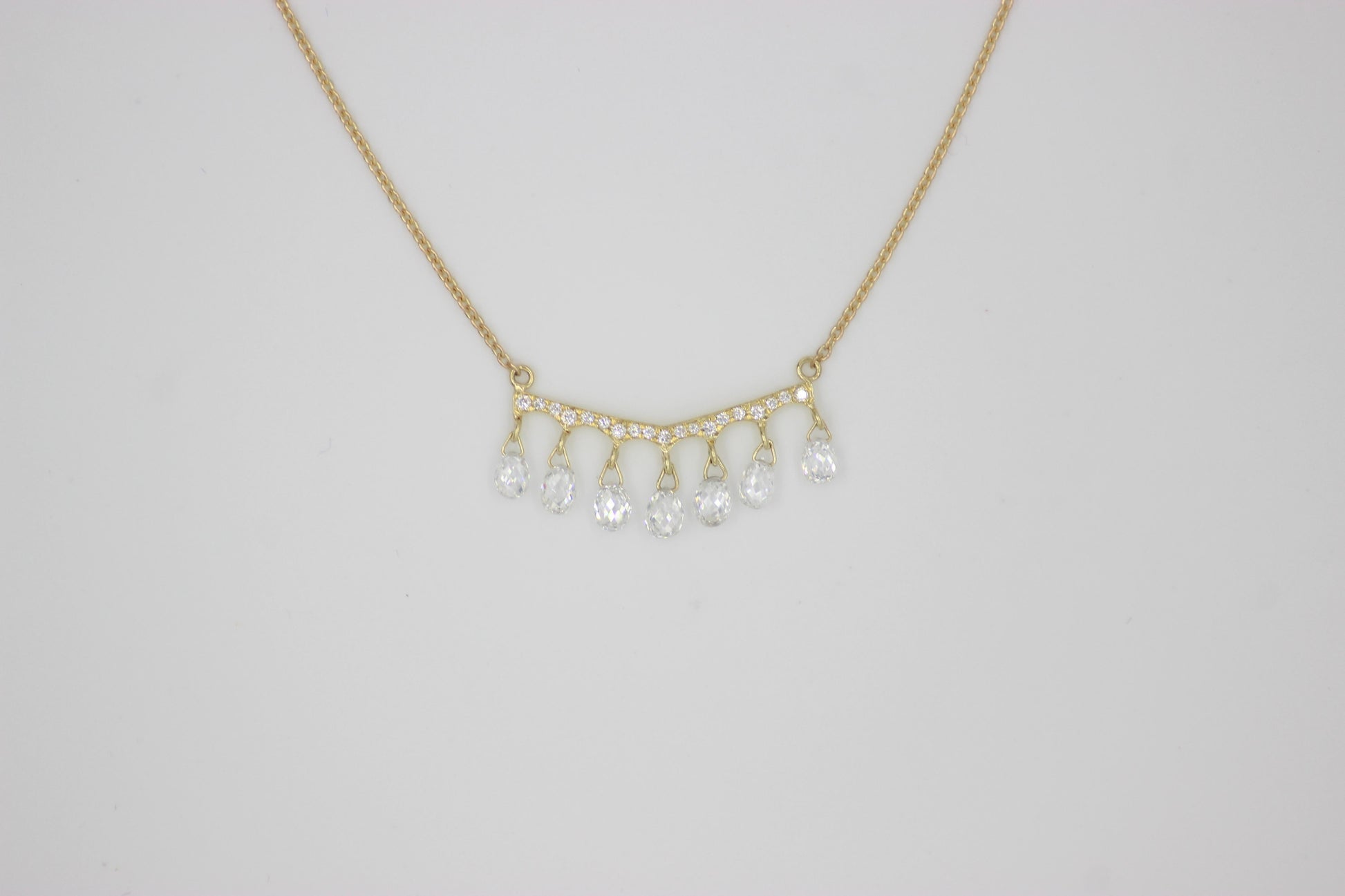 Diamond Briolette Yellow Gold Pendant Necklace