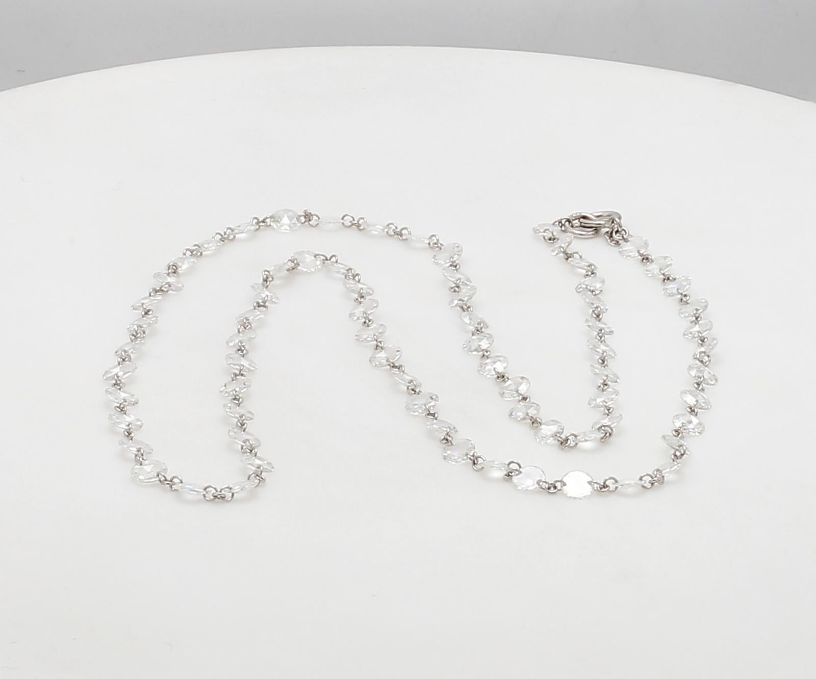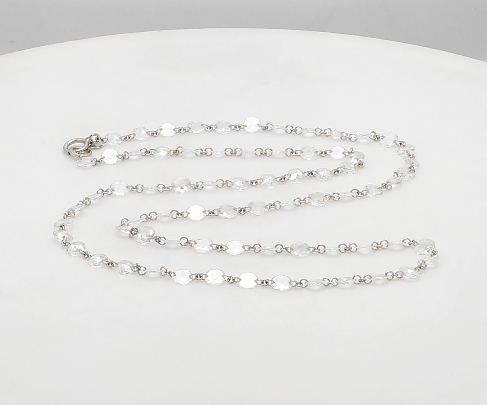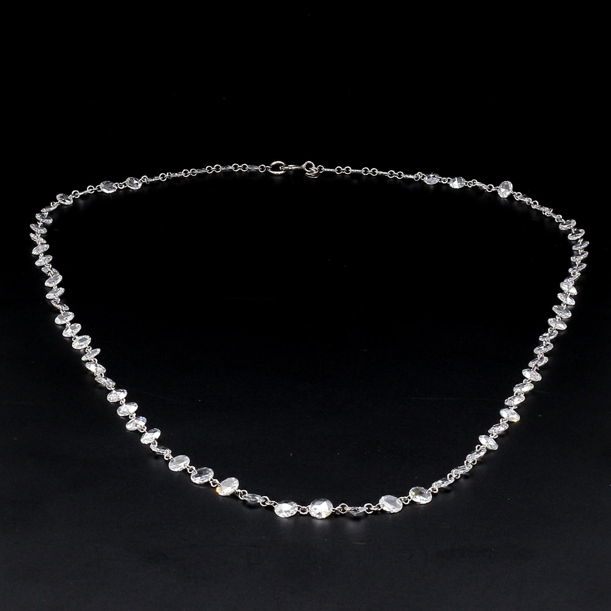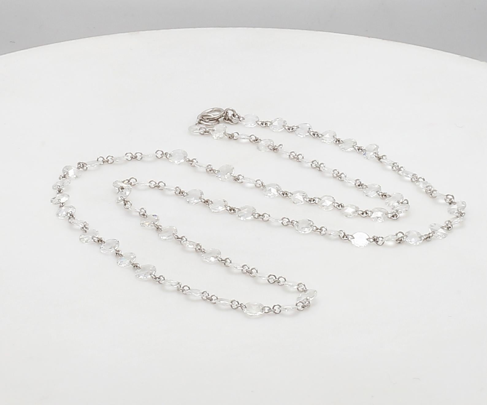 A gorgeous diamond necklace is a staple in everyone's wardrobe .This Panim Classic Diamond Rosecut Necklace features round shape diamond rosecut .These diamonds sparkle incredibly ,set in 18k white gold .This diamond necklace can be worn alone or can be layered with other necklaces .The length of the necklace is 16 inches.