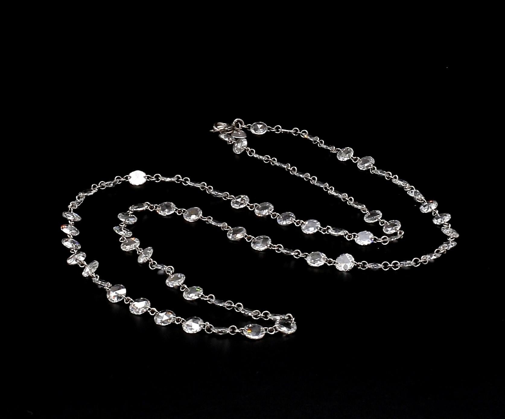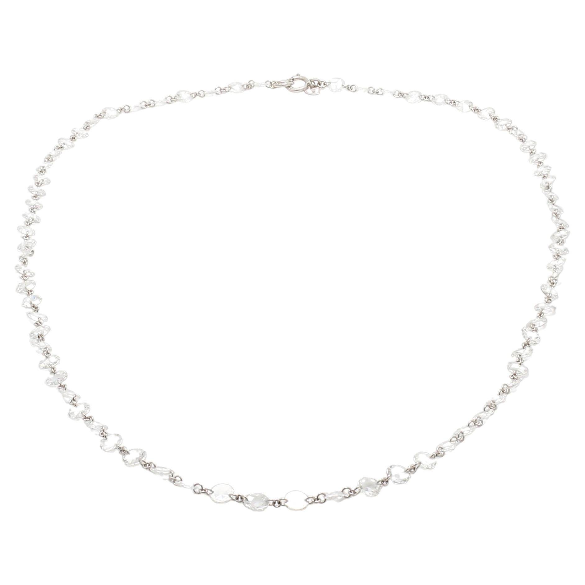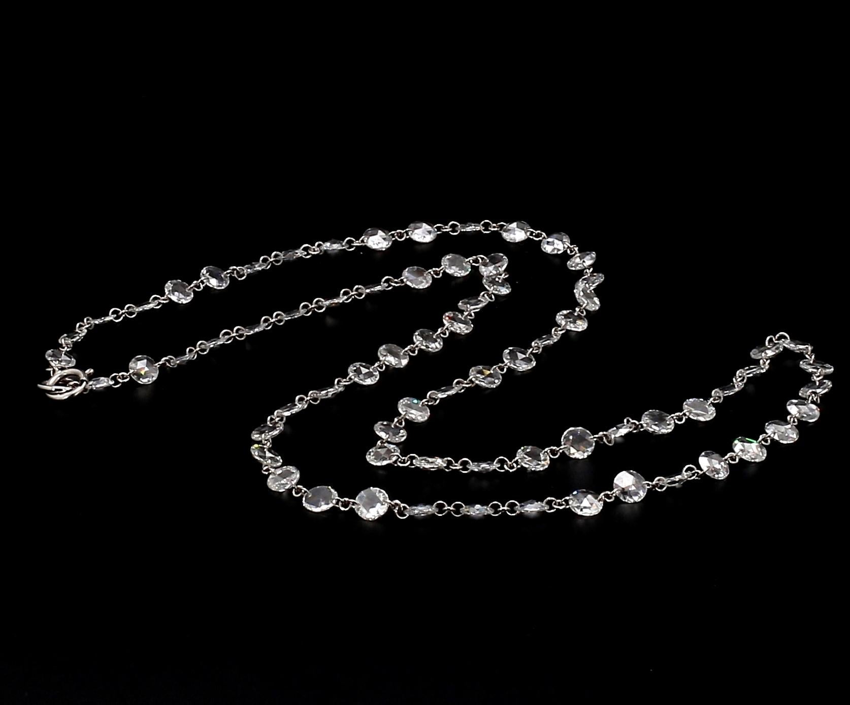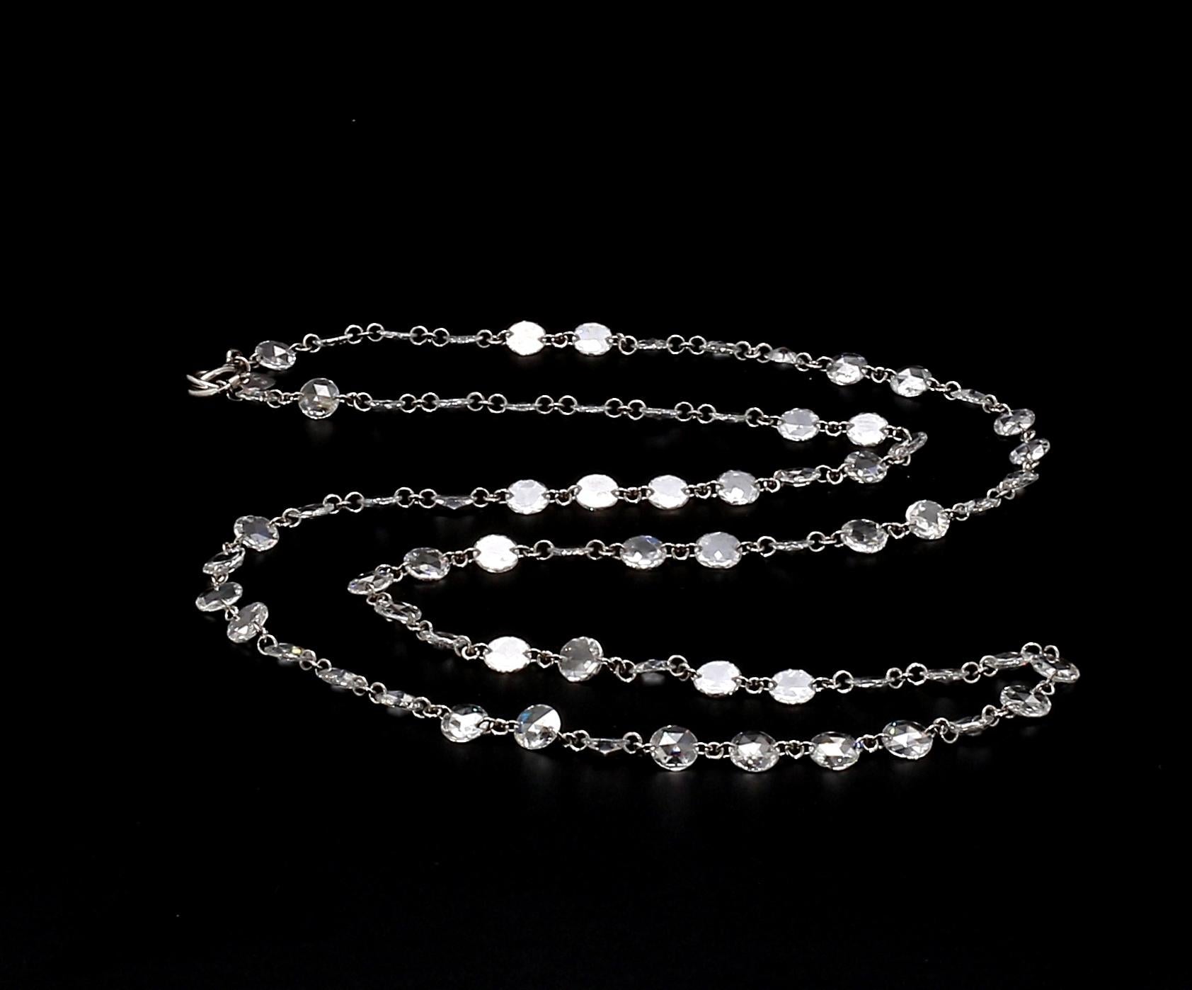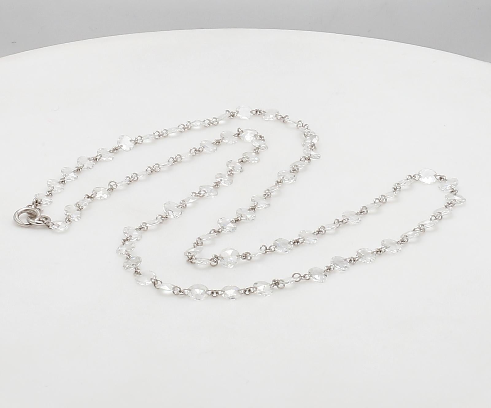 A gorgeous diamond necklace is a staple in everyone's wardrobe .This Panim Classic Diamond Rosecut Necklace features round shape diamond rosecut .These diamonds sparkle incredibly ,set in 18k white gold .This diamond necklace can be worn alone or can be layered with other necklaces .The length of the necklace is 16 inches.