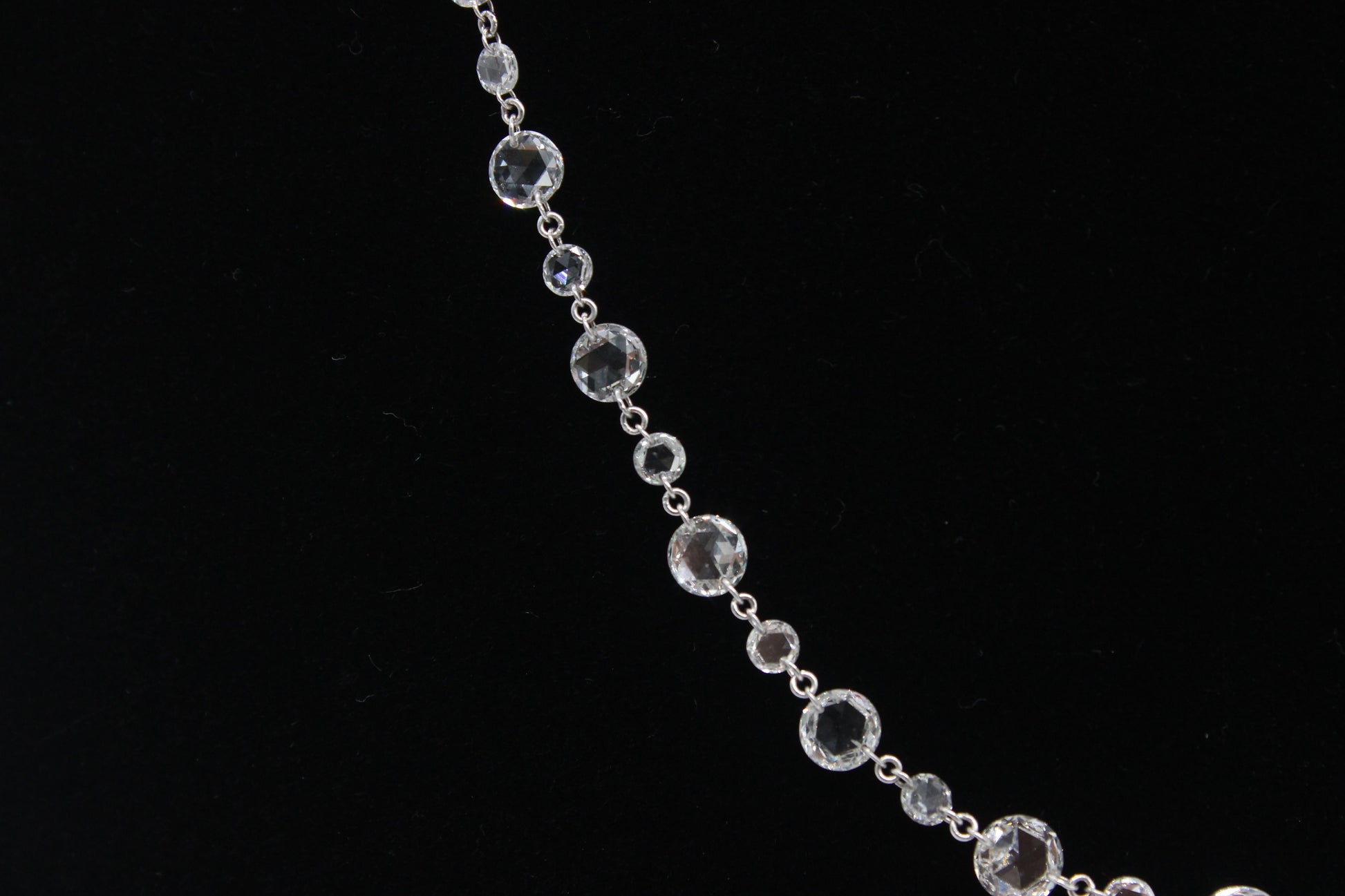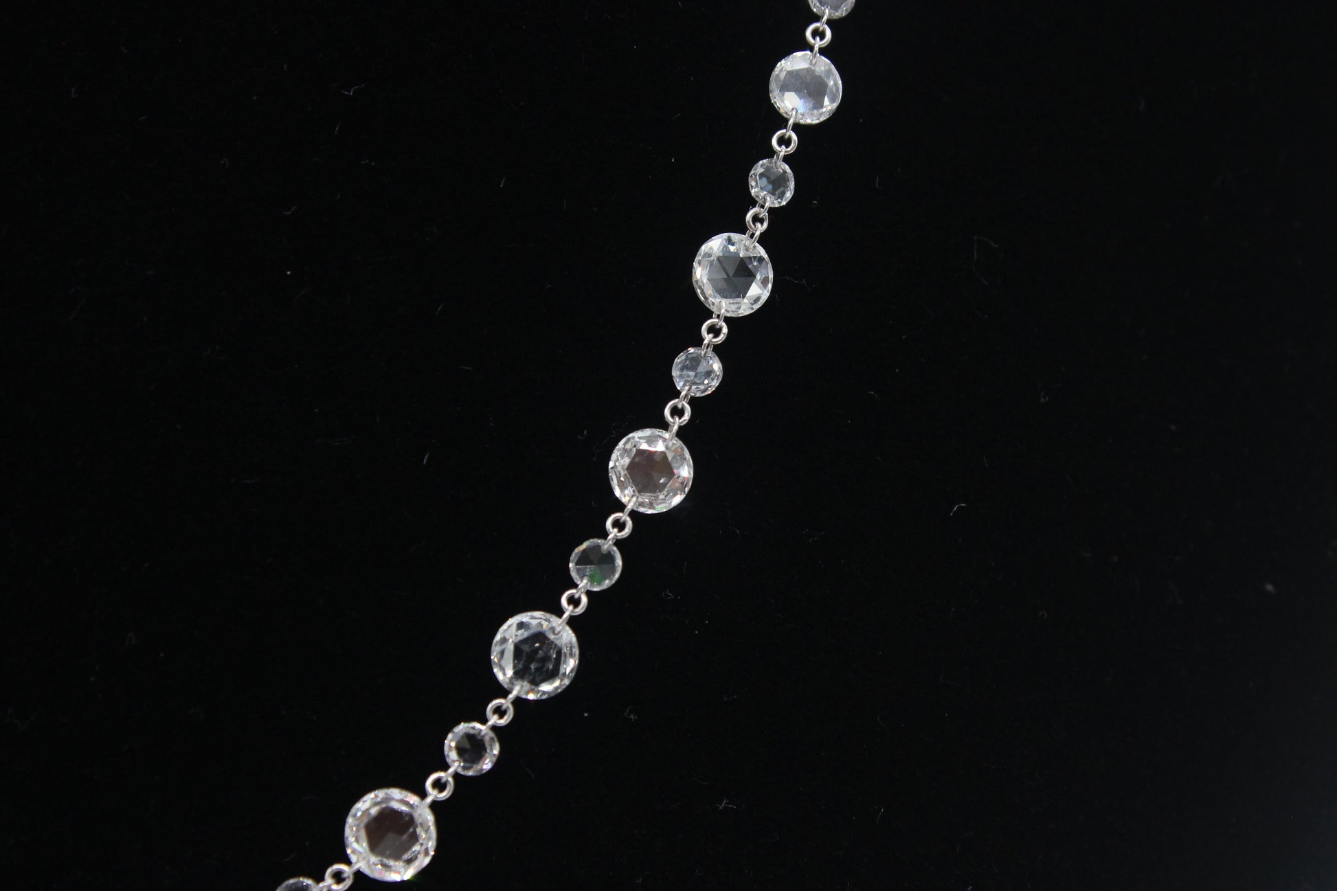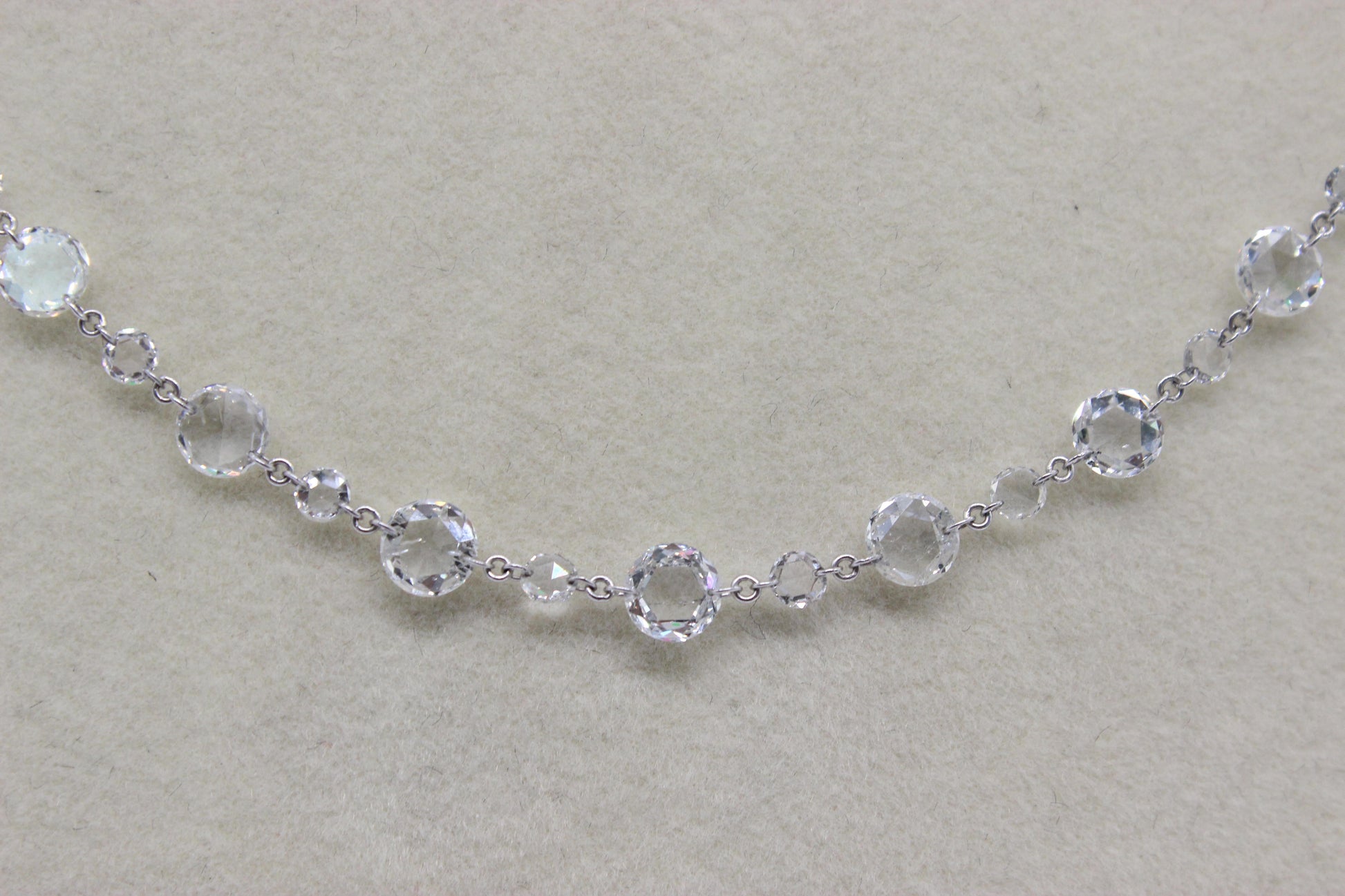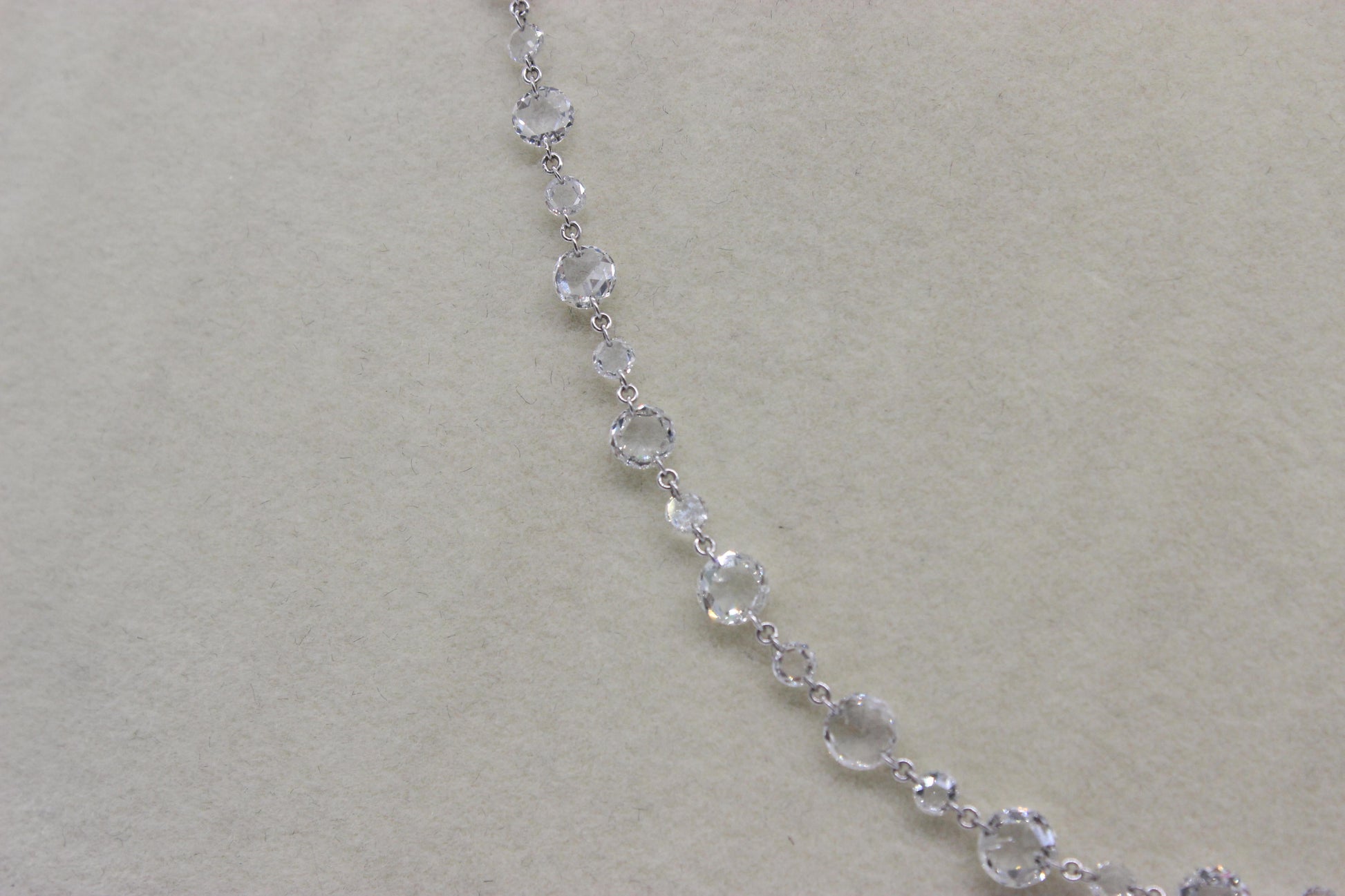 Stunning & Classic Panim diamond rosecut necklace made of 18kt white gold, with links made of nearly invisible 18kt white gold. The diamond rosecuts weigh about 9 carats. This necklace features an alternating size of round shape diamond rosecut. For numerous alternative looks, this lovely necklace can be worn alone or layered with other necklaces for more chic look.