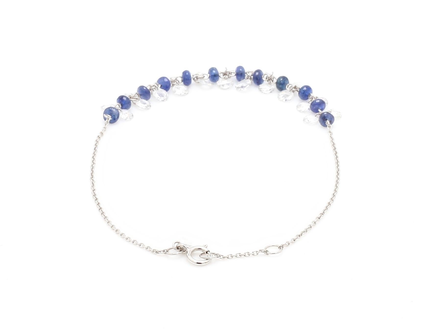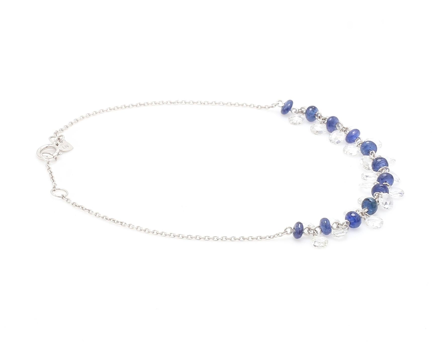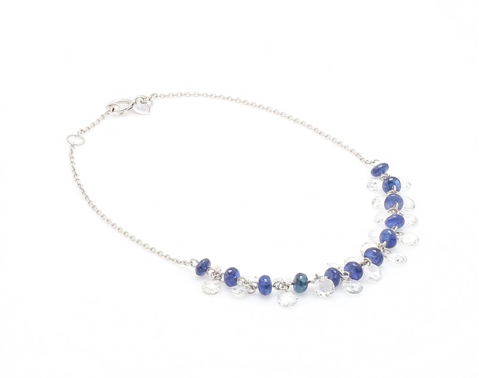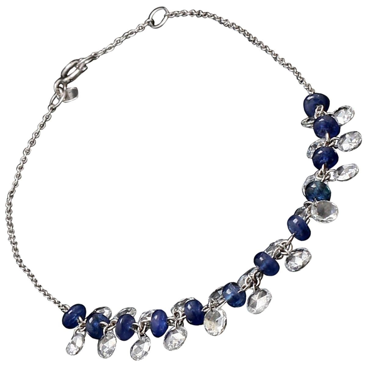 Diamond Rosecut and Sapphire 18 Karat White Gold Dangling Bracelet