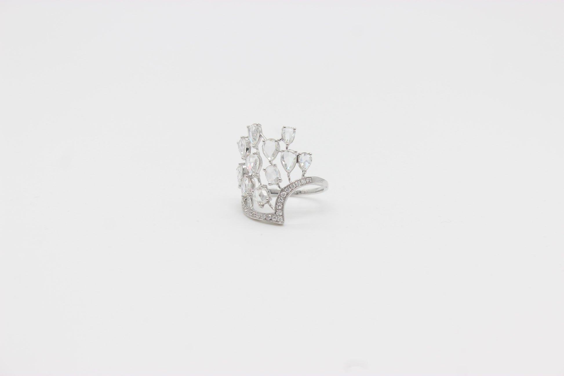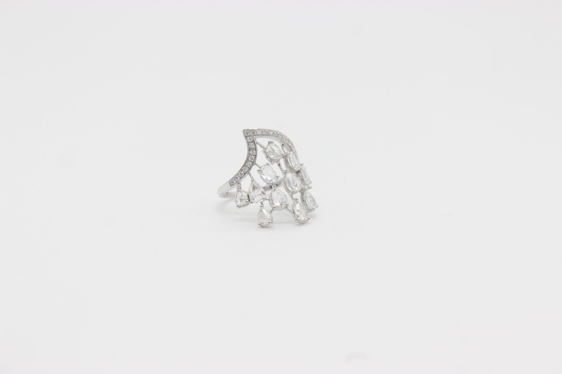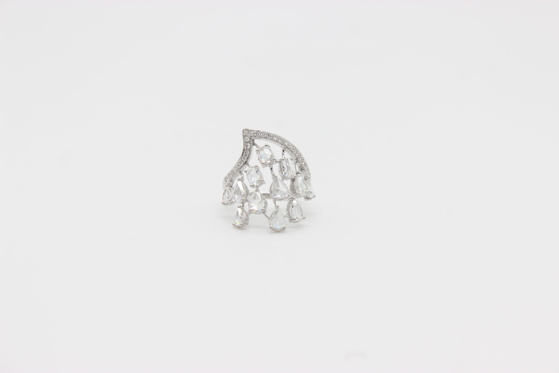 This diamond rosecut ring is a perfect fit if bold is the statement you're looking to make. Mixed with oval & pear shape rosecut essence, newness is what this ring brings. Perfect for any occasion ,be it a casual lunch date or a fancy event ,this ring can be worn alone or stacked with other rings.