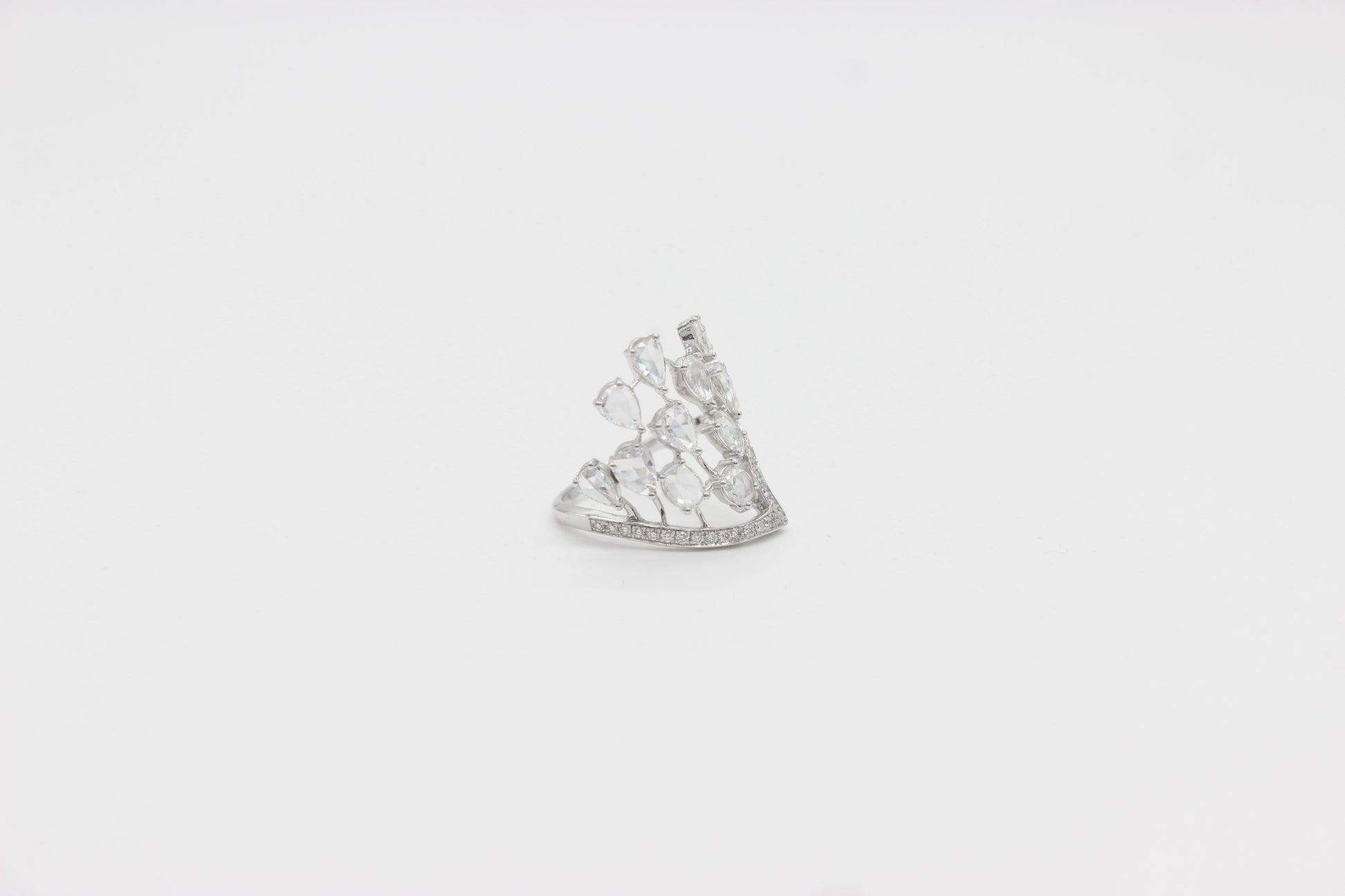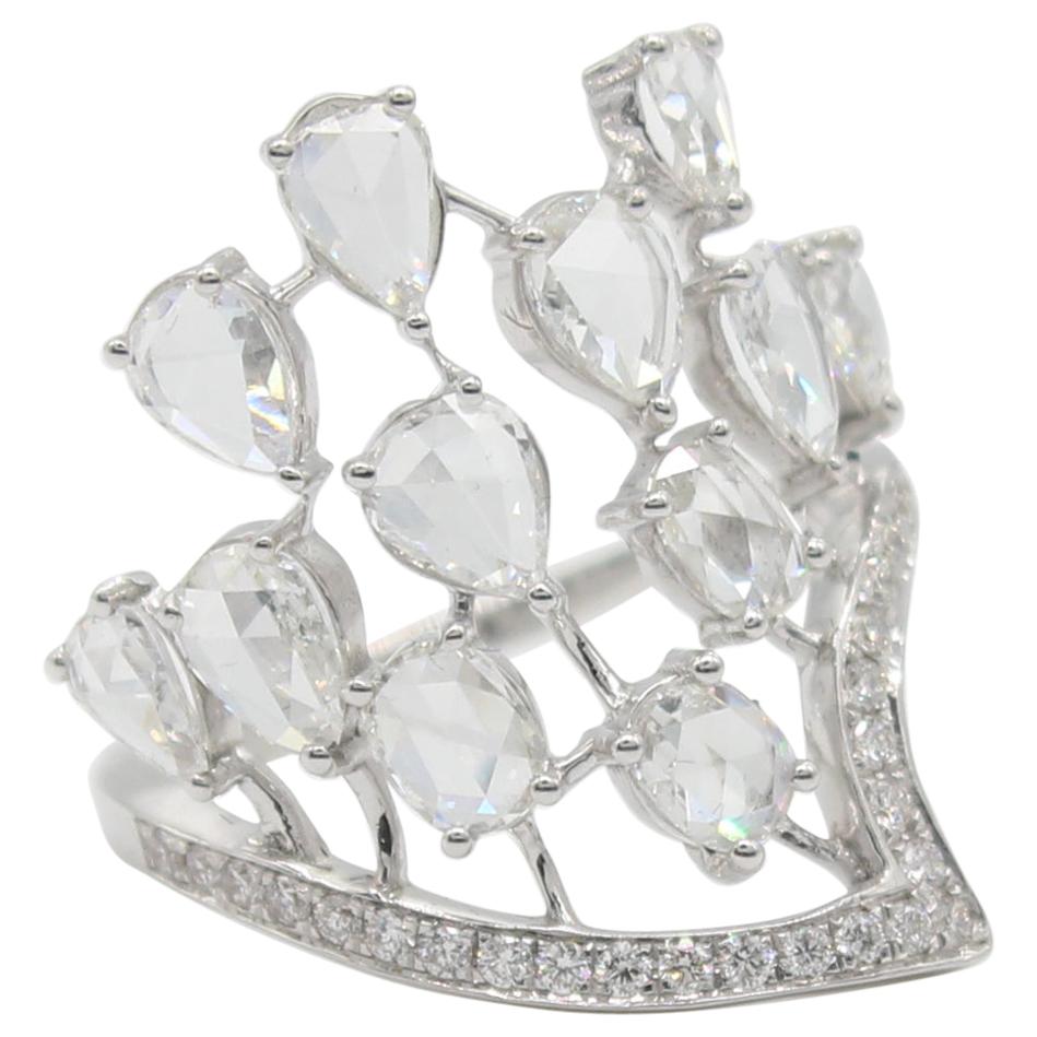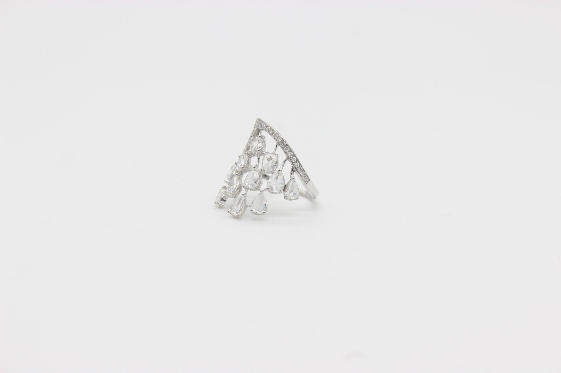 This diamond rosecut ring is a perfect fit if bold is the statement you're looking to make. Mixed with oval & pear shape rosecut essence, newness is what this ring brings. Perfect for any occasion ,be it a casual lunch date or a fancy event ,this ring can be worn alone or stacked with other rings.
