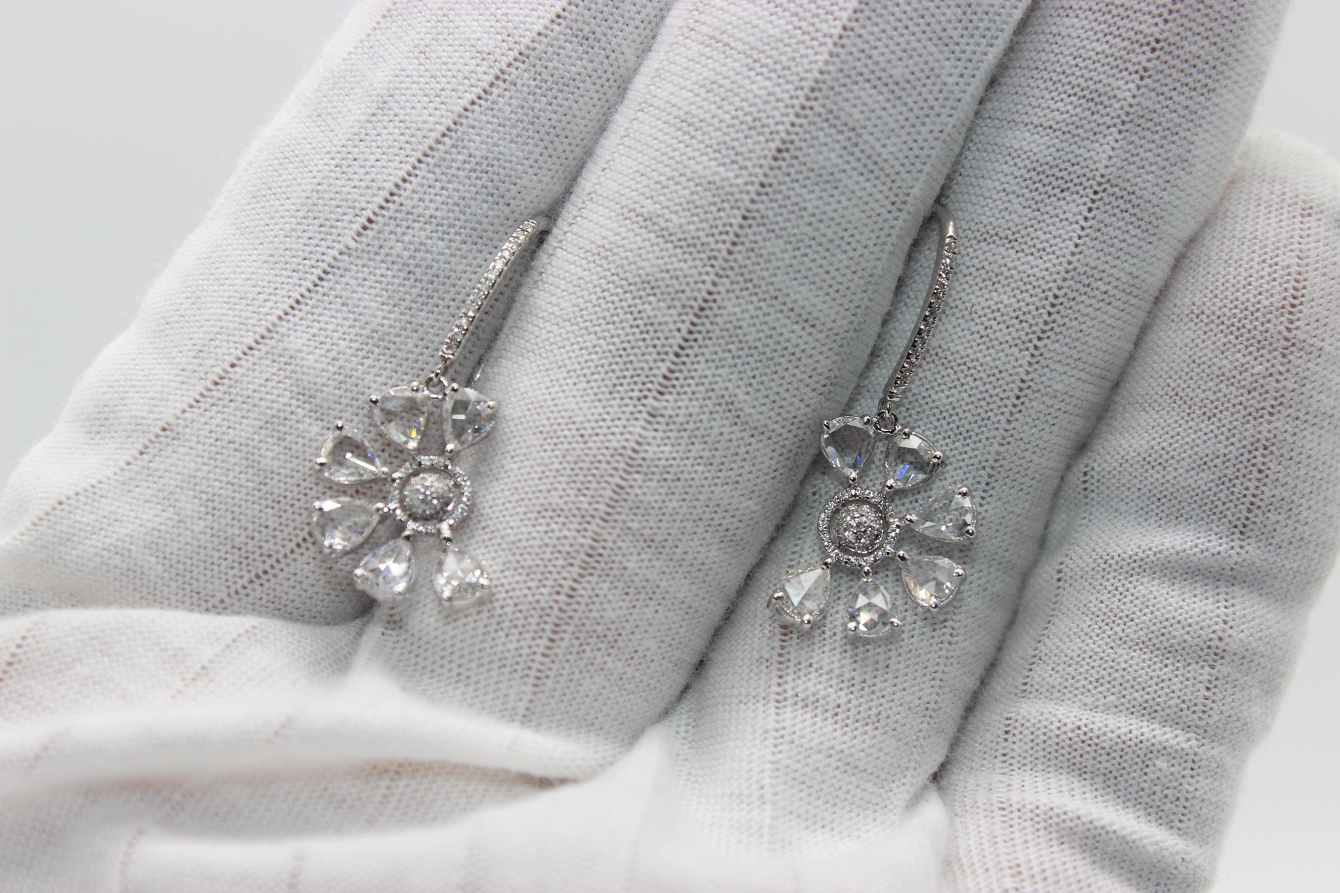 The dazzling Pear Shape Rosecut Diamonds in these dainty floral earrings are set by a master setter in our studio and are composed in 18k white gold. A fantastic gift for your loved ones, this simple but distinctive piece is lovely and simple to wear. These will undoubtedly be her favourite jewellery. Give it to her make her smile and shine!!