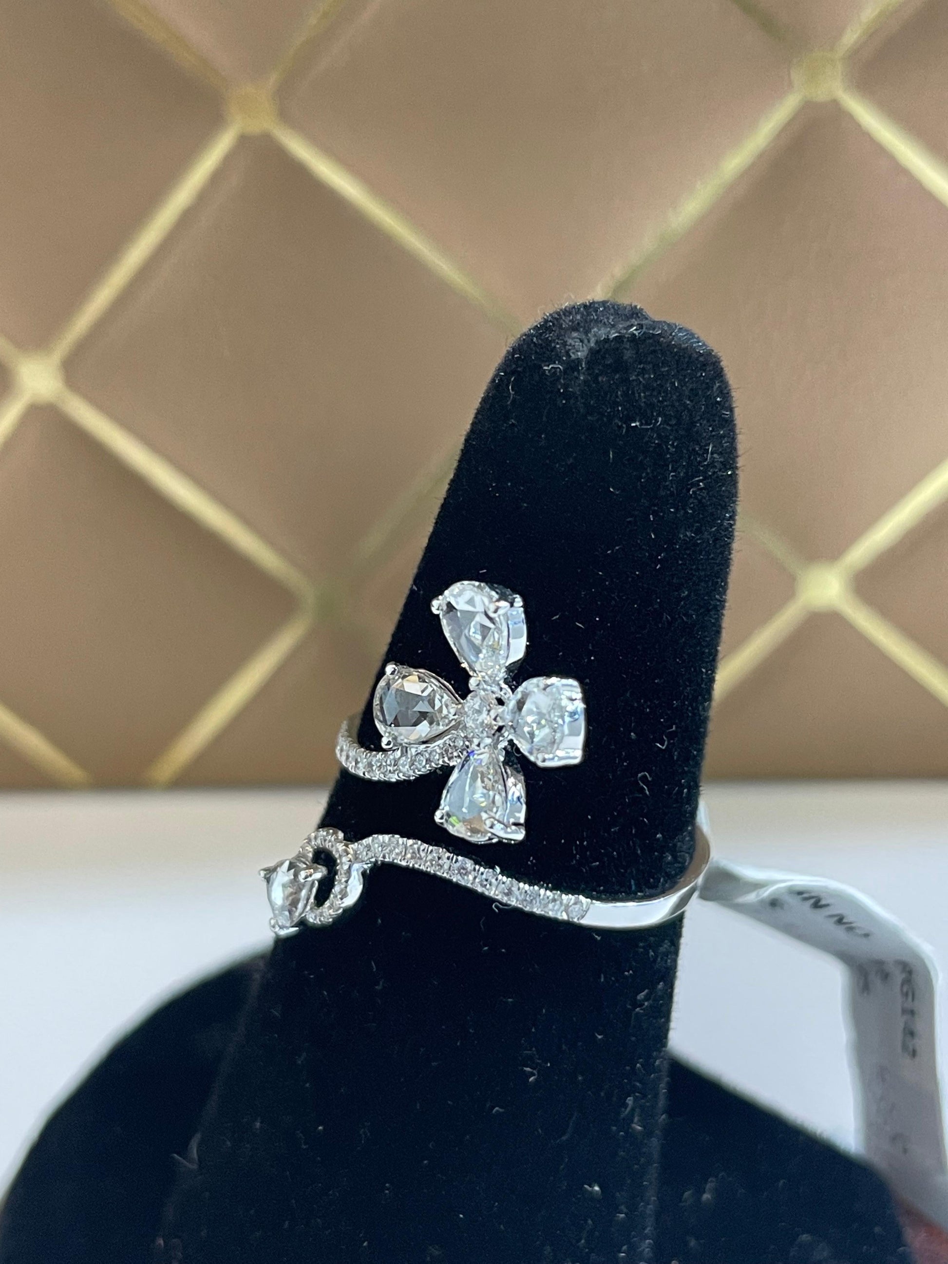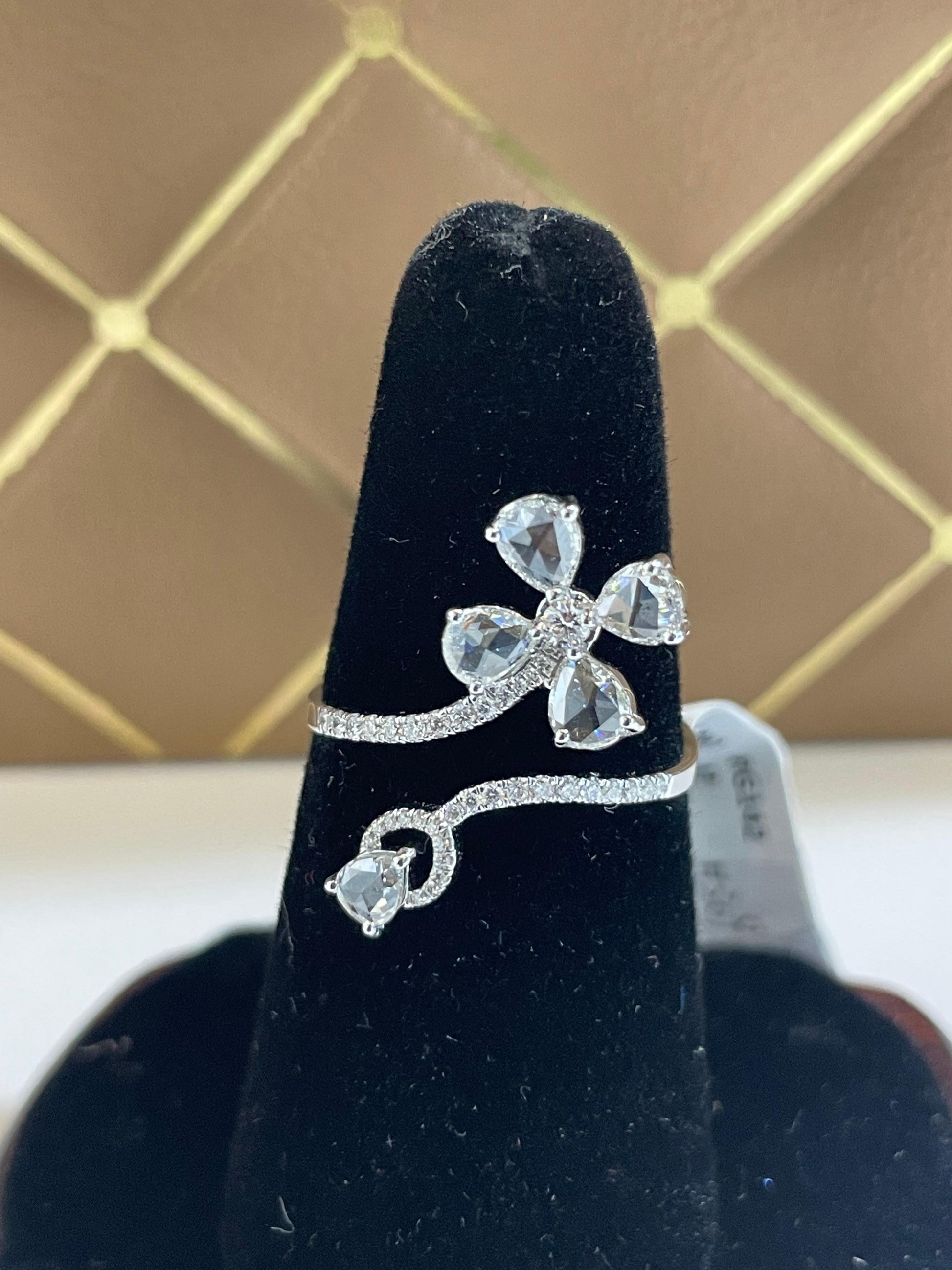 Inspired by nature, the ring is made in shape of 5 petals of flower with rosecut diamonds delicately set into floral symmetry accented by brilliant cut diamonds in our micro pave setting.