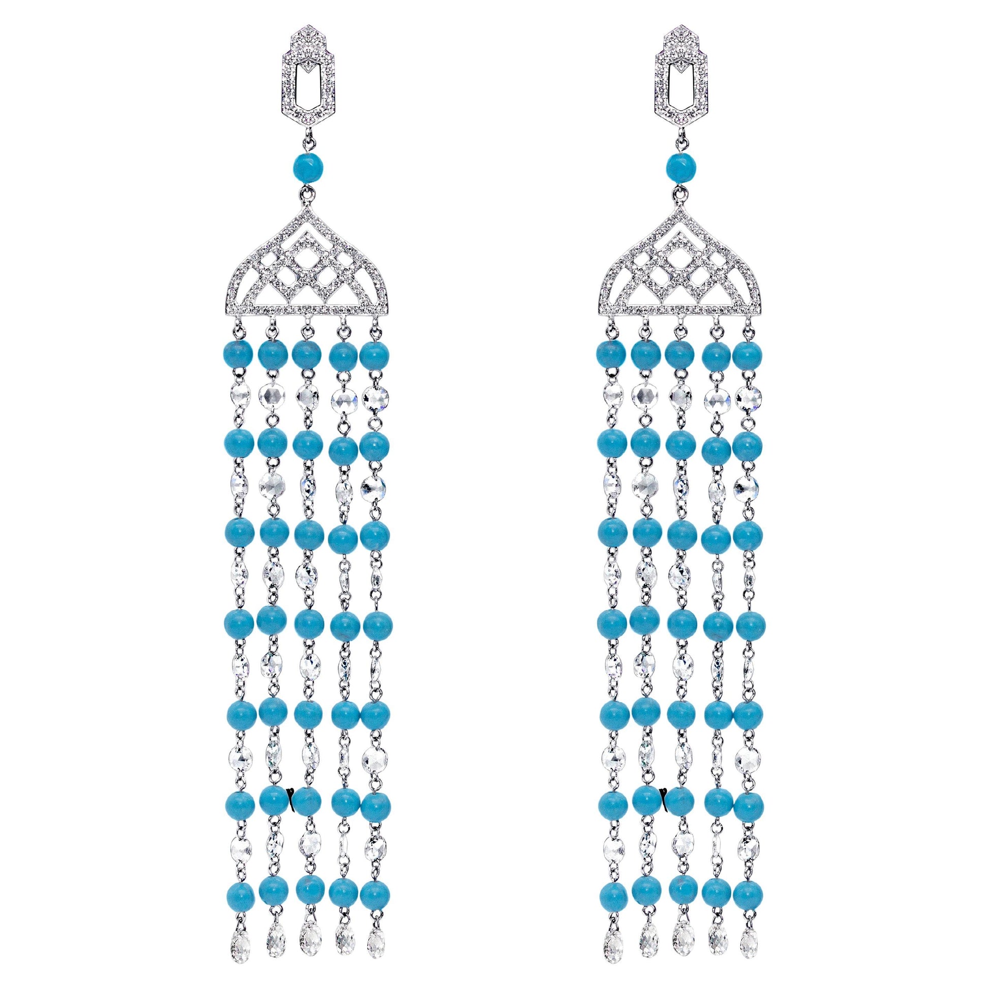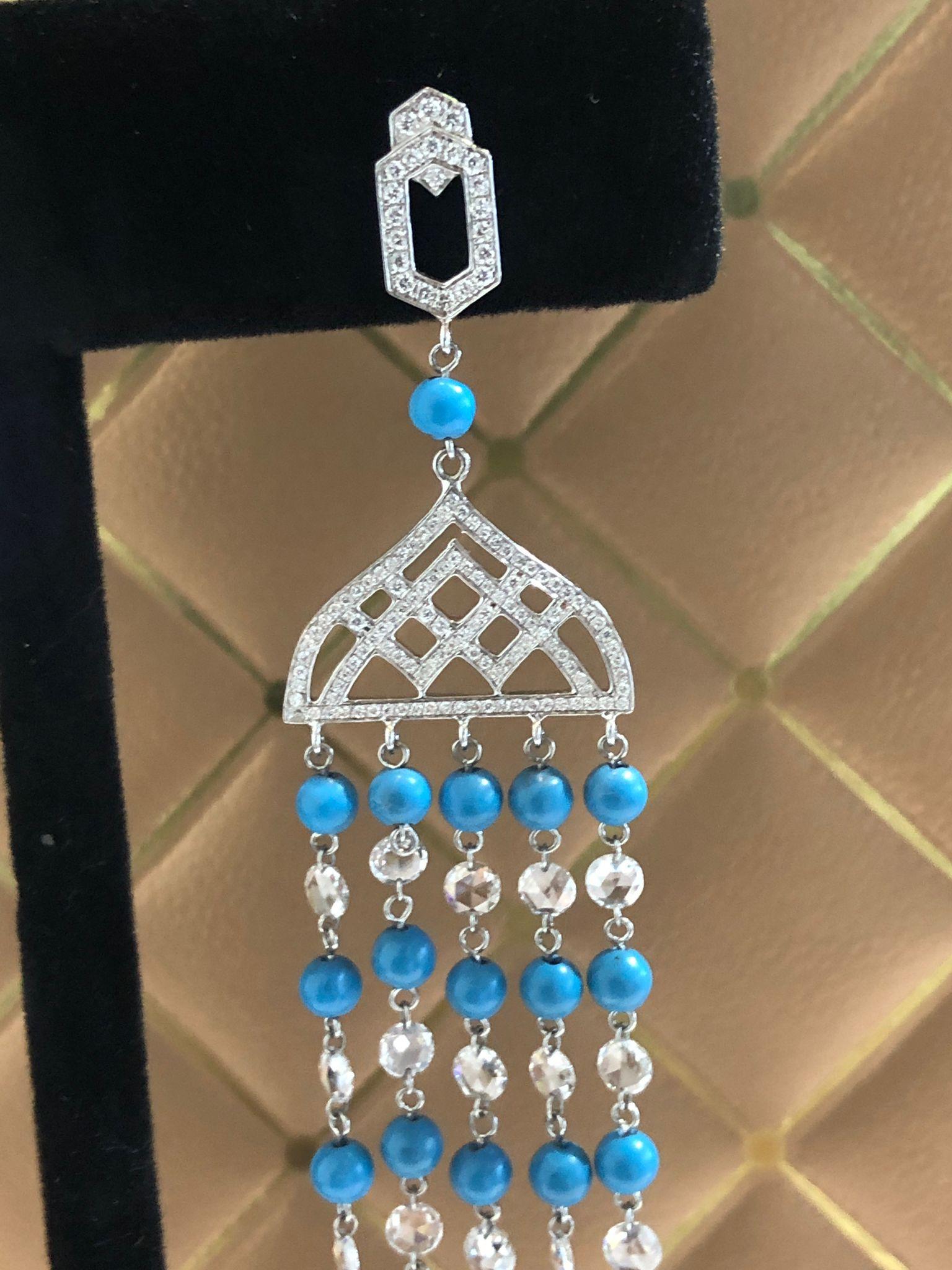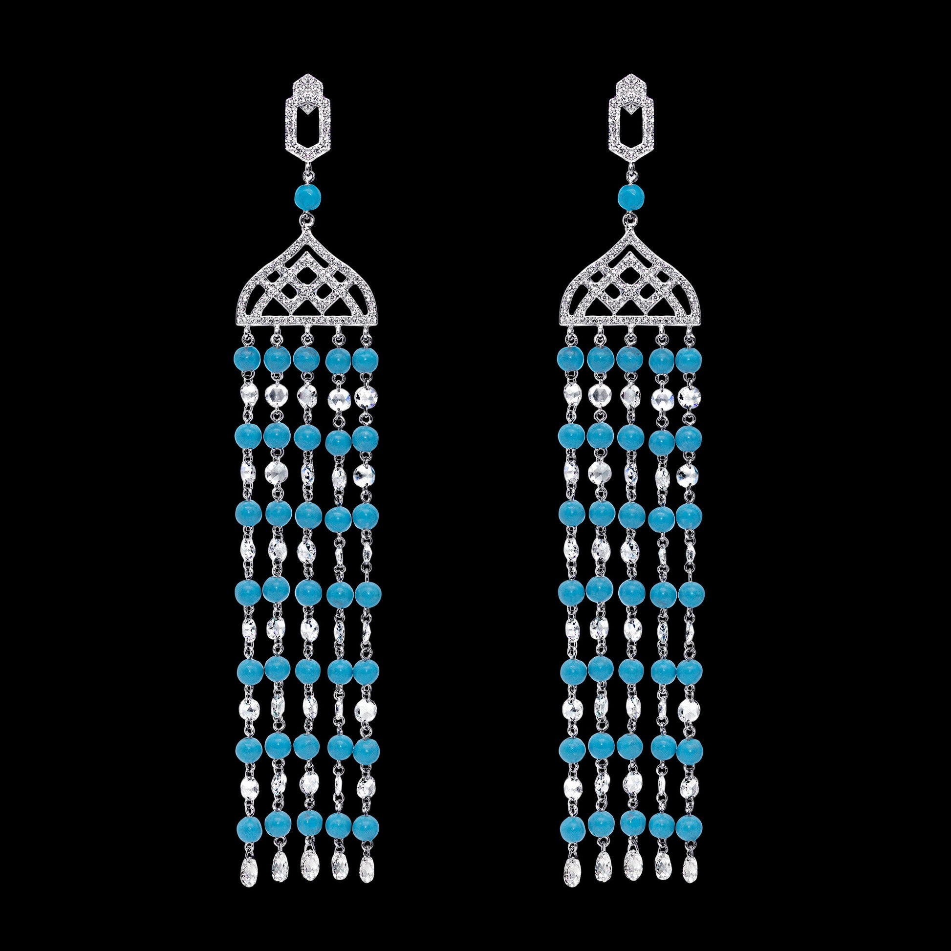 Inspired by nature, our Signature Waterfall Collection Earrings is full of brilliance and sparkle, this Rose cut diamond earring with Turquoise will make a perfect piece for your ensemble.