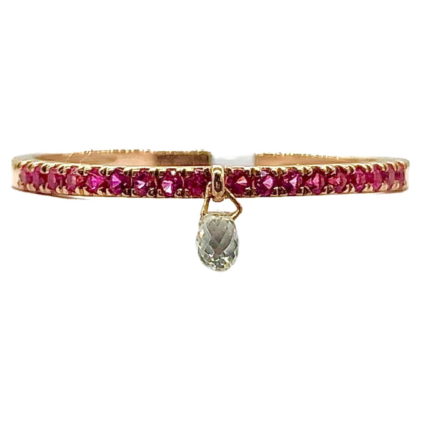 Mono Diamond Briolette & Ruby Dangling Ring, Rose Gold