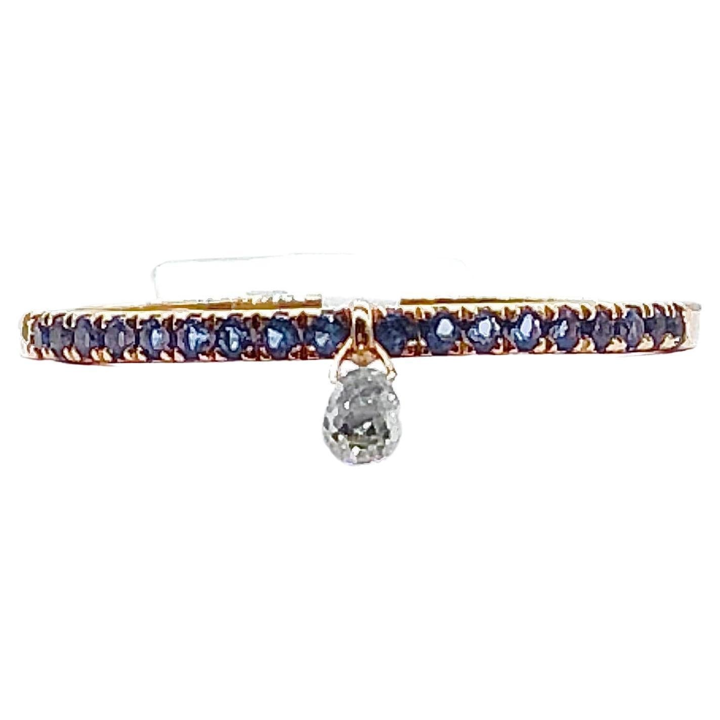 Mono Diamond Briolette & Sapphire Dangling Ring, Rose Gold