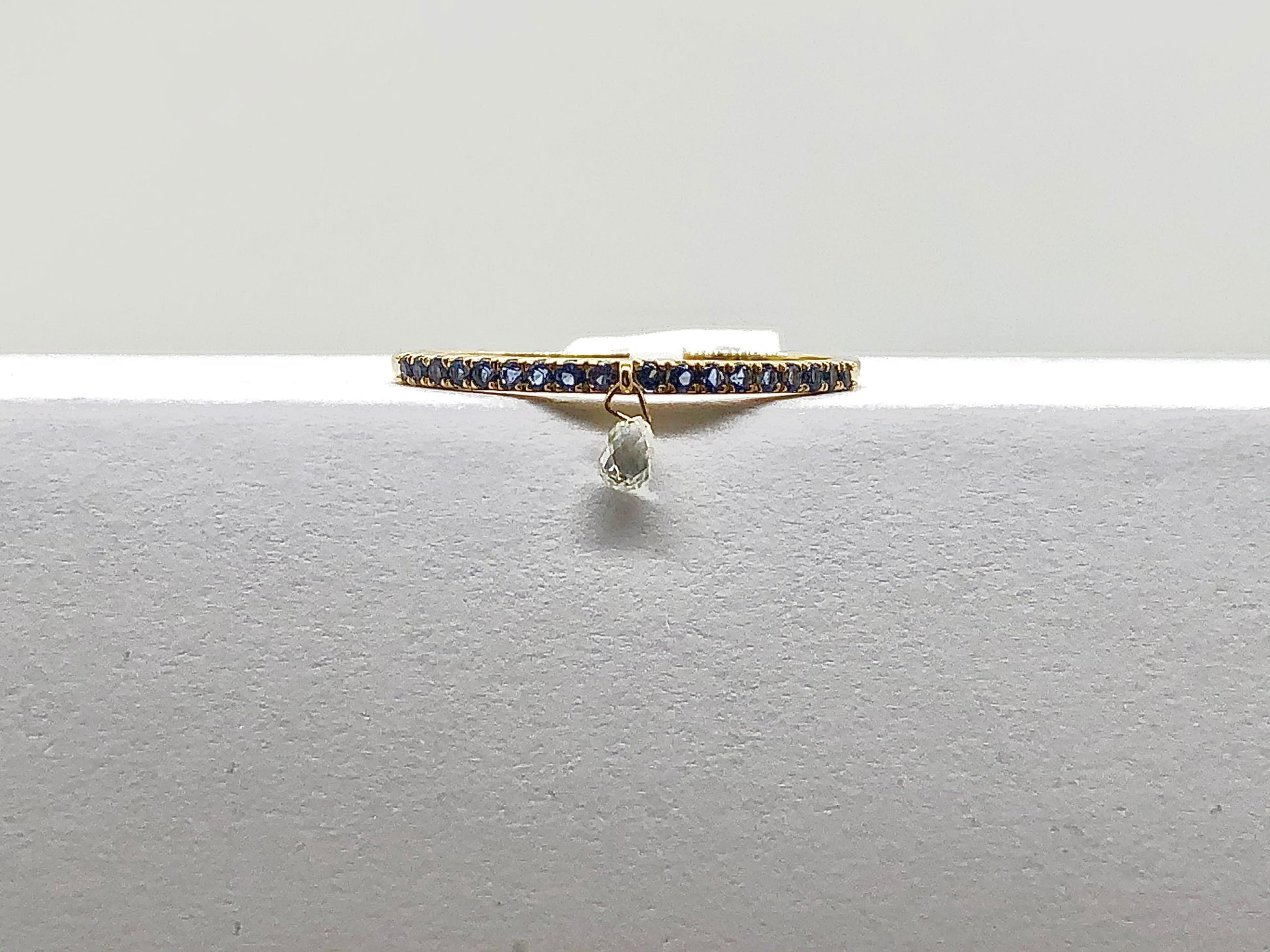 Mono Diamond Briolette & Sapphire Dangling Ring, Yellow Gold